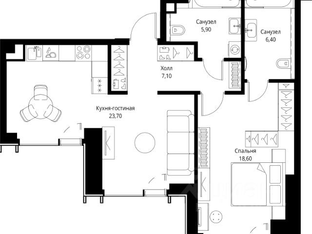 Прямая продажа от застройщика. Продаётся 1-комнатная квартира общей площадью 61.70 м² без отделки в ЖК VEER на 28-м этаже 59 этажного дома. Жилой комплекс бизнес-класса VEER от компании MR Group — это футуристичный мультиквартал, расположенный в престижной локации на западе Москвы. Благодаря переменной высоте башен — двух 22-этажных, 46-этажной и двух 59-этажных — возникает динамичность в силуэте комплекса, а его яркий образ вносит разноплановость в архитектурный пейзаж района. Расположение и транспортная доступность: • VEER удобно расположен в непосредственной близости от Кутузовского проспекта, обеспечивая быстрый доступ к центральным районам Москвы • Комплекс находится непосредственно напротив самого большого природного заказника в Москве - парка "Долина реки Сетунь", а за семь минут можно доехать до памятника садово-паркового искусства, Троекуровского леса. • Всего в 15 минутах - центр города, самая престижная бизнес-школа управления России "Сколково", дом творчества "Переделкино". Инфраструктура: Разнообразить свой день резиденты VEER смогут также проводя больше времени на свежем воздухе. Двор разделен на 4 зоны разных эмоций и действий, которые пересечены и соединены веерными прогулочными маршрутами: • Спортивная площадка устроена в глубине "Кленовой рощи" • В "Чайном домике" будет создан навес с утеплением для отдыха в любую погоду • Площадки для детей воплотятся в "Волшебный лес" с цветами, зеркалами и световым дизайном • "Центральная площадь" устроена у водного оазиса живописного пруда. Компания MR Group предлагает своим клиентам специальные условия приобретения квартир в рамках программ ипотечного кредитования от банков-партнеров. Продается 1-комнатная квартира 60 м2 в Москве.