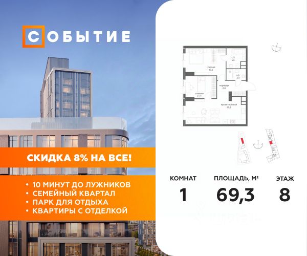 В продаже 1-комнатная квартира квартира в элитном квартале "Тишинский бульвар". Общая площадь квартиры - 68.60 кв.м. Этаж 3 из 6. Корпус К7. "Тишинский бульвар" - тихий зелёный элитный квартал на Тишинке, в престижном и комфортном районе центра Москвы. В нём создан уникальный для элитного дома прогулочный бульвар в своём огромном парке 1,9 га. В парке оборудованы зоны для активного и тихого отдыха, крытые галереи, приватные зелёные комнаты, многофункциональная спортивная площадка, воркаут-зона, детская площадка, сухой фонтан, ручей. В пешей доступности Римско-католический кафедральный собор. Всего в полутора километрах от квартала находятся Патриаршие пруды - излюбленное место для летних прогулок, воскресных бранчей и романтических ужинов. Белая площадь расположена ещё ближе - на расстоянии 1,2 километра. Это точка концентрации деловой жизни и модных ресторанов. В "Тишинский бульваре" только для жителей и их гостей создан уникальный для элитного дома прогулочный бульвар в собственном огромном парке площадью 2,1 га, который занимает 70% территории квартала. Бульвар проходит через весь квартал и объединяет в общее пространство три двора: Кленовый, Рябиновый и Ивовый. В парке созданы крытые галереи и приватные зелёные комнаты для отдыха и медитаций в любую погоду. Насыщенное озеленение многолетними растениями с разными периодами цветения сохраняет территорию квартала красивой круглый год. В квартале насыщенная инфраструктура только для жителей, включая Clubhouse. Здесь оборудованы пространства для здорового образа жизни по стандарту FIT LAB: в парке - многофункциональная спортивная площадка, воркаут-зона, место для занятий йогой и медитации; бесплатный фитнес-клуб с бассейном. Для маленьких жителей доступны детская площадка и игровая комната по стандарту KIDS LAB. Дома оснащены самыми полными и лучшими системами. Продам 1-комнатную квартиру 70 м2 (квадратных метров) в Москве.