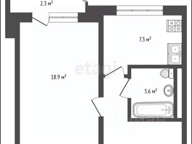 ПЛАНИРОВКА КВАРТИРЫ: квартира общей площадью 37,6 кв.м., с учетом балкона 38,6, жилая площадь 18,9 кв.м, кухня 7 кв.м. Совмещенный санузел. Застекленный балкон.
