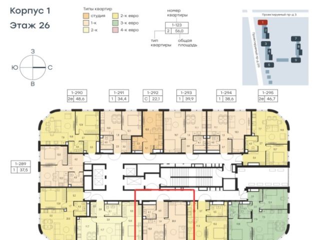 Продаётся 1-комнатная квартира в строящемся доме (Секция 7), срок сдачи: III-кв. 2028, общей площадью 36.1 кв.м., на 4 этаже.