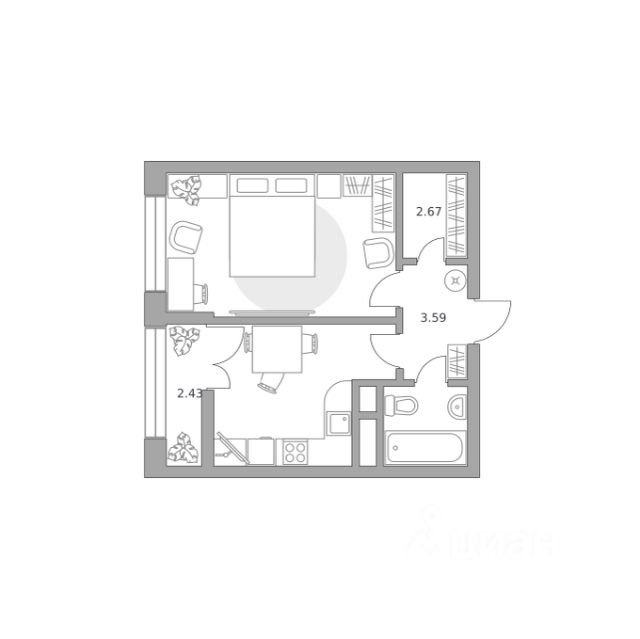 Продаётся 1-комнатная квартира 67, площадью 37,54 м², на 9 этаже в ЖК "Пехра" корпус 8. Стоимость — от 7015097 руб. Квартира без отделки, планировка односторонняя, окна во двор.