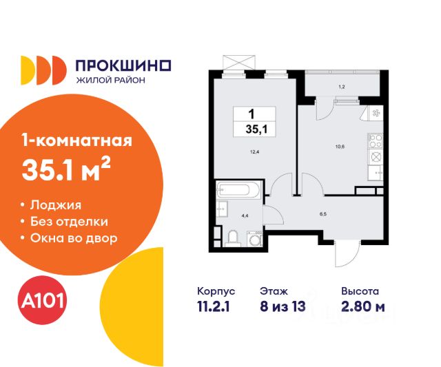 1-комнатная квартира (по документам) на комфортном этаже общей площадь 30,2 кв м и с учётом лоджии ( 34 кв.м ) в состоянии "под отделку".