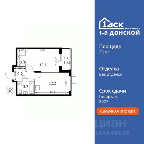 Прямая продажа от застройщика! Жилой Комплекс класса Комфорт Плюс. Продаётся 1-к квартира номер 148 общей площадью 37.1 кв.м. на 15-м этаже 24 этажного здания. Без отделки. Цена с учётом скидки. Особенности квартиры: - МЦД-5 в пешей доступности - Квартал с собственной набережной - Свои 2 детских сада и школа - Организуем показ в удобное для вас время! - Линейная планировка - максимальная функциональность и удобство. - Гардеробная - удобство для хранения и организации вещей. - Ниша под шкаф - компактное и удобное место для вещей. - Лоджия - уютное место для отдыха и тишины. Квартира без отделки. Чистый холст для воплощения интерьера вашей мечты. Информация о комплексе: ЖК "1-й Донской" в 7 км от МКАД: гармония городского комфорта и природы. Квартиры на 2-3 стороны света, форма секций и разная этажность создают динамичную архитектуру. Тёплая палитра фасадов и подсветка подчеркивают образ. Рядом - Ермолинский парк, Видновский лесопарк и Жуковский парк. Природа воздействует на все уровни восприятия: от видов до звуков и ароматов. Идеальный баланс для жизни в гармонии с окружающей средой. Транспортная доступность: Комплекс удобно расположен в 7 км от МКАД по трассе М-4 Дон (через Видное). Расстояние до Каширского шоссе составляет 12 км. Добраться до метро и центра Москвы позволяет развитая сеть маршрутов общественного наземного транспорта. Действующая ж/д станция Калинина Павелецкого направления в 15-17 минутах ходьбы (МЦД-5 в 2025-2026 гг). Внутренняя инфраструктура: "1-й Донской": продуманная среда в развивающемся районе. На территории - муниципальные школа и 2 детских сада, поликлиника, торговый центр с площадью для мероприятий. Сеть пешеходных маршрутов ведёт к магазинам и кафе, отделённым от дорог зелёными фито-стенами. Сквозные подъезды с панорамным остеклением и входами с улицы и двора наполнены светом. Всё для комфортной жизни в шаговой доступности, от повседневных нужд до общественных пространств. Квартира без отделки - чистый холст для вашего интерьера.