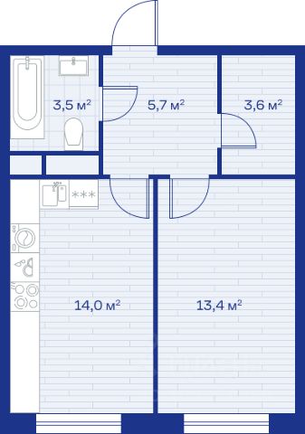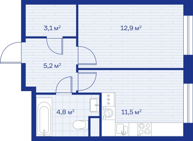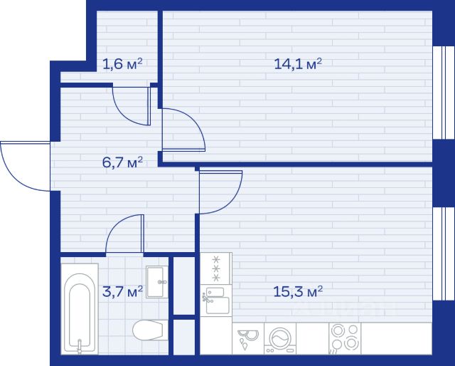 Однушка с балконом на 11 этаже 12-этажного дома, общей площадью 34,98 кв.м
