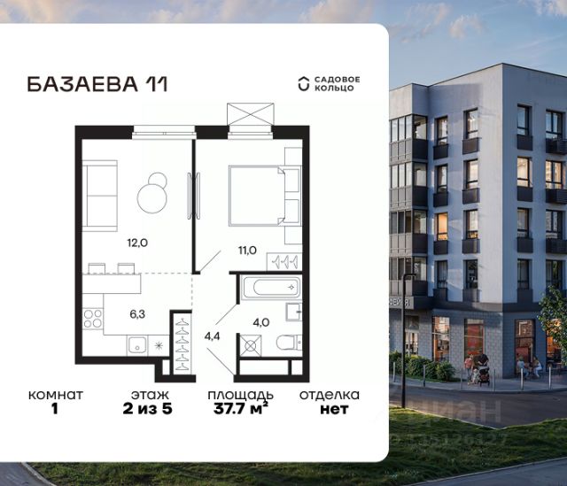 Продается квартира в ЖК "Базаева, 11" с 1 спальней на 5 этаже 5 этажного дома. Общая площадь: 36.3 кв.м. Высота потолков 2.72 м. Срок сдачи 2 квартал 2027 г. Эскроу-счет. Застройщик ГК "Садовое кольцо". -Расположение Жилой комплекс в экологически чистом районе Московской области городском округе Шаховская. Камерное пятиэтажное здание находится в пешей доступности от всей необходимой инфраструктуры. Автостанция Шаховская расположена в 10 минутах от дома. Всего в 11 минутах ходьбы находится ж/д станция Шаховская, откуда удобно добраться электричкой до Рижского вокзала. Дорога до МКАД займет 1,5 часа на автомобиле. -Инфраструктура Проект расположен рядом с современным теннисным центром и Дворцом торжеств. В шаговой доступности — детская школа искусств, Шаховская гимназия, школа 1 и три детских сада. Всего за 3 минуты от дома можно дойти до Городского парка — здесь вас ждут аттракционы, верёвочный городок, тюбинговая горка и ресторан. Парк соседствует с живописным сквером у реки, украшенным подвесными мостами, ротондой и фонтанами. -Внутренний двор На территории проекта появится огороженная детская площадка, рассчитанная на детей всех возрастов, — с песочницей, канатным комплексом и зоной для игр. Для любителей активного образа жизни будет обустроена спортивная площадка с теннисным столом, турниками, тренажёрами и гимнастическими брусьями. Для автовладельцев на территории проекта предусмотрена удобная плоскостная парковка на 81 машино-место. -Архитектура Монохромное здание оформлено декоративным кирпичом и штукатуркой в тёплых светло-серых и насыщенных серых тонах. Эстетику фасада подчёркивают террасные ограждения и корзины для кондиционеров, выдержанные в единой цветовой гамме. -Входная группа Входные группы спроектированы на уровне земли — без ступеней и перепадов. Такой подход обеспечивает комфортный доступ в подъезд с коляской, чемоданом или велосипедом и подчеркивает продуманную архитектуру дома.