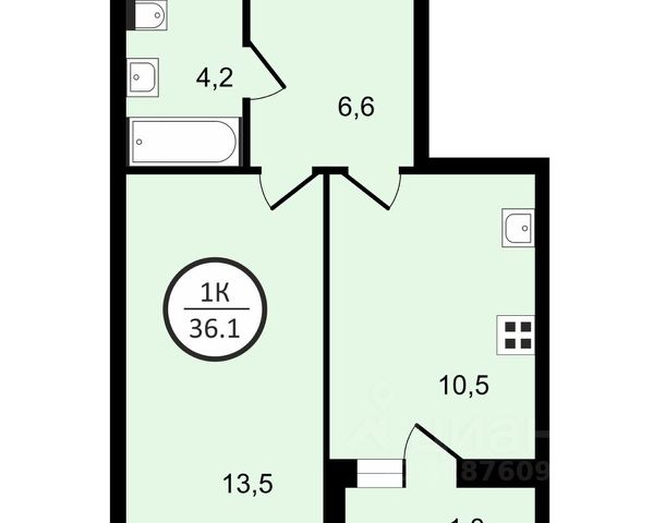 Продаётся 1-комнатная квартира в строящемся доме (Дом 6 Корпус 1.1), срок сдачи: II-кв. 2026, общей площадью 39.6 кв.м., на 13 этаже. Жилой комплекс "Дзен-кварталы" от застройщика "А101" в городе Москва на улице Александры Монаховой.