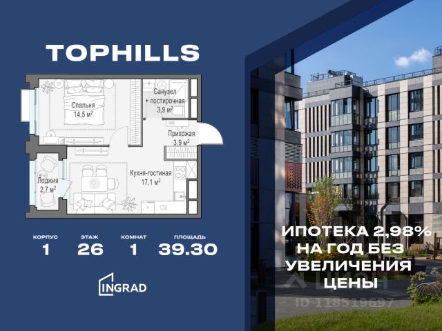 Прямая продажа от застройщика. В жилом квартале, расположенном в Нагорном районе Москвы, продаётся 1-спальная квартира площадью 39.30 кв.м без отделки. Квартира расположена на 26 этаже 26-этажного дома, корпус 1, в жилом квартале бизнес-класса TopHILLS (застройщик ГК Инград). Расположение: Нагорный район - один из наиболее благополучных на юге Москвы. С одной стороны, локация окружена лесопарковой зоной "Долина реки Котловки" и Коробковским садом, с другой - имеет удобную транспортную связь с центром города и доступ к развитой инфраструктуре. Нагорный район Южного округа Москвы не относится к центру города, поэтому здесь менее загруженный автомобильный трафик, позволяющий за 10 минут доехать до ТТК. Для тех, кто предпочитает общественный транспорт - в шаговой доступности станции метро "Нагорная" и "Нагатинская". Отличная транспортная доступность: Даже в часы пик жители квартала возвращаются домой вовремя и не важно, по какому направлению. ТТК в десяти минутах, до метро - рукой подать. Метро Нагорная - 100 метров Метро Нагатинская - 1 км Особенности комплекса и благоустройство: В жилом квартале TopHILLS собственная инфраструктура органично разместилась в стилобате между жилыми корпусами: торговый комплекс, детский развивающий центр, кафе, ресторан домашняя пекарня, супермаркет. Воспользоваться инфраструктурой можно, не снимая тапочек, без выхода на улицу. Стоимость квартиры - 25 780 000 Р. Дом сдан. Более подробную информацию по объекту уточняйте по телефону и в отделе продаж.