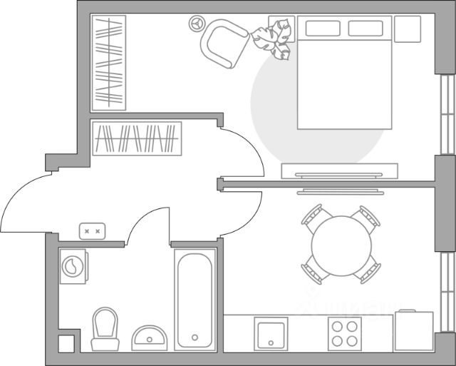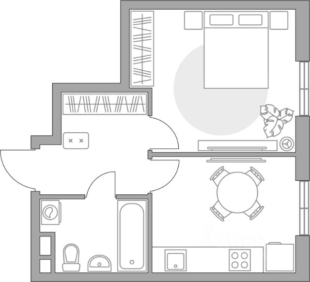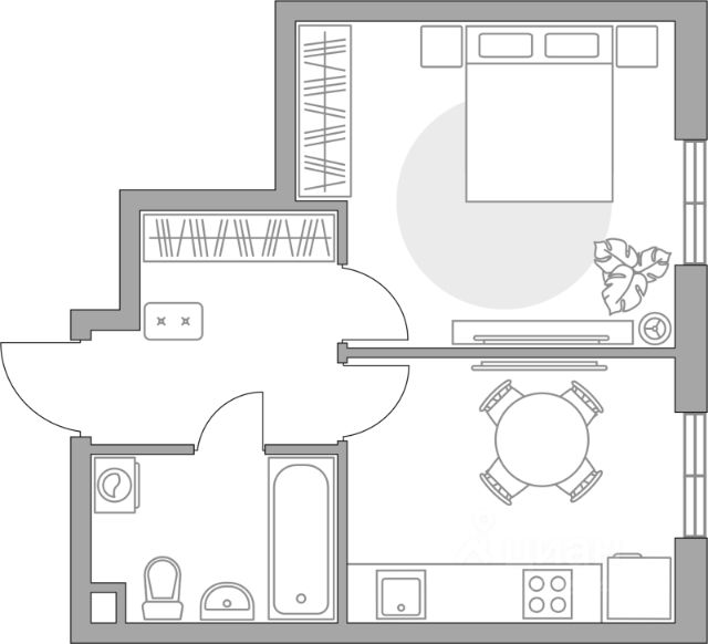 Продаётся 1-комнатная квартира в строящемся доме (Секция 7), срок сдачи: III-кв. 2028, общей площадью 34.57 кв.м., на 4 этаже.