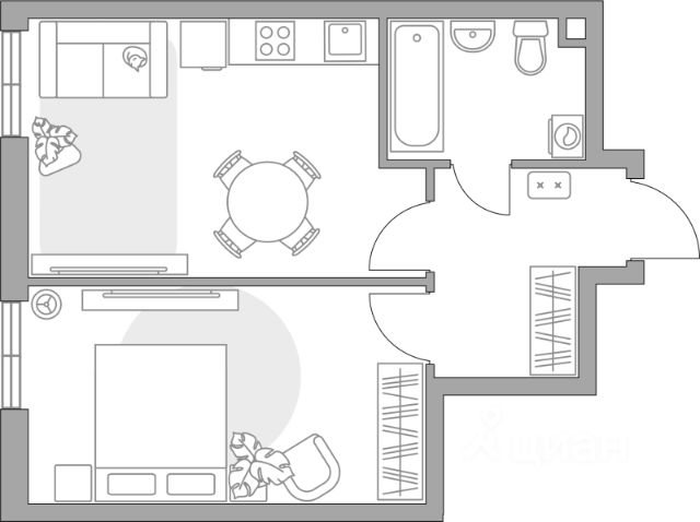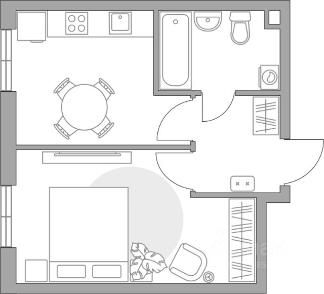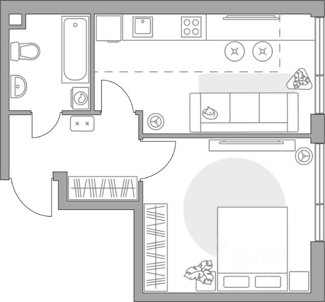 Продаётся 1-комнатная квартира в строящемся доме (Секция 7), срок сдачи: III-кв. 2028, общей площадью 34.02 кв.м., на 15 этаже.