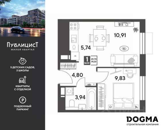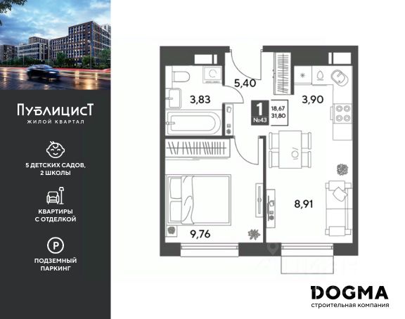 Продаётся 1-комнатная квартира в строящемся доме (Корпус 4), срок сдачи: IV-кв. 2026, общей площадью 44.5 кв.м., на 8 этаже. Расположение, транспортная доступность