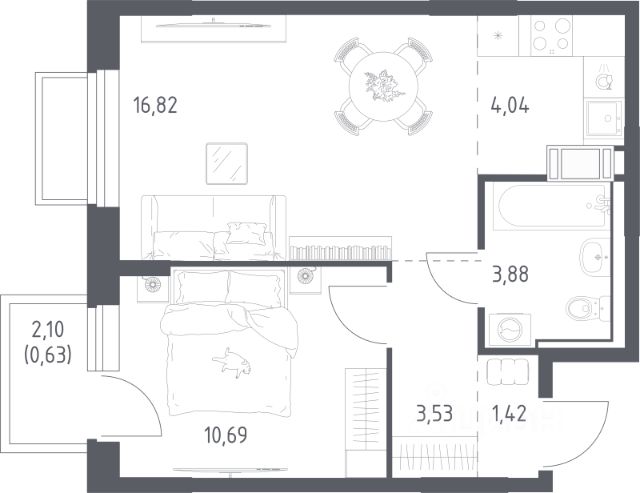 В продаже 1-комнатная квартира в корпусе 6.4 ЖК 'Томилино Парк'. Квартира располагается на 15 этаже, общая площадь 35.07 м2.