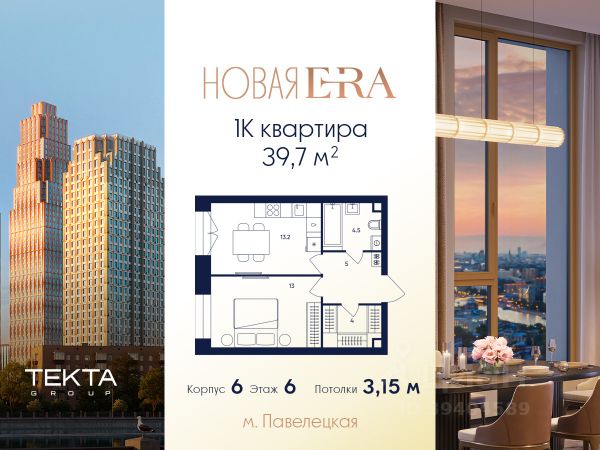 Рассрочка 0% с платежом от 250 000 ₽ в месяц. 1-комн. квартира в ЖК "Era" на 6 этаже в 37 этажном здании Корпус 6. Общая площадь: 39.7 кв.м., жилая: 13.00 кв.м. Высота потолков 3.15 м. Квартал ERA — это не только архитектурный шедевр, но и комфортное место для жизни. Благоустроенная территория включает английский сад, зоны отдыха, цветущие поляны и современные детские площадки. На первых этажах зданий предусмотрены коммерческие помещения — магазины, кафе, и сервисы, делающие жизнь здесь удобной и насыщенной. ERA предлагает квартиры с разнообразными планировками и вариантами отделки — от White Box до полностью свободного пространства для индивидуального дизайна. Удобное расположение в Даниловском районе Москвы обеспечивает быстрый доступ к центру города, а продуманная инфраструктура и уникальный стиль делают квартал отличным выбором для жизни и инвестиций.