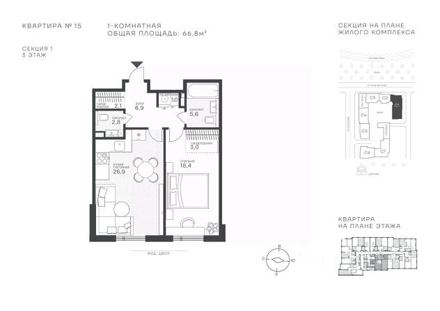 В продаже — однокомнатная квартира, общей площадью 46,27 кв. м. Квартира расположена на шестом этаже десятиэтажного корпуса Балансд в квартале В16 нового района СберСити, который строит Сбер. Архитектуру квартала В16 создало итальянское бюро ARCHEA middle east: каждый дом узнаваем, но вместе они складываются в спокойный, цельный ансамбль. В облицовке сочетаются тёплые оттенки кирпича и металла, за счёт игры фактур фасады выглядят живыми и меняются в разное время дня. Строгая геометрия поддерживает ритм города, а мягкая природная палитра помогает чувствовать себя дома, а не в деловом квартале. Дом возводится по технологии монолитного строительства. Квартиры передаются без отделки, что позволяет будущим владельцам реализовать собственные дизайнерские решения и индивидуальные планировки. В квартирах предустановлена система "умный дом", объединяющая управление квартирой, домом и прилегающей территорией. Можно регулировать климат и освещение голосом или через смартфон. Высота потолков — от 3,12 м. Квартал состоит из девяти домов средней этажности — от 7 до 10 этажей. Корпуса формируют большой внутренний двор площадью два гектара. Во дворе предусмотрены зоны для разных сценариев: просторные площадки для детей, пространства для активного досуга и спорта, тихие места для отдыха и спокойного времени, а также удобные рабочие места под открытым небом. Здесь легко найти своё — для жизни, здоровья и занятий тем, что действительно нравится. В доме предусмотрены: уютное лобби с зоной ожидания, лапомойка, санузел, помещение для хранения колясок и велосипедов, подземный паркинг. СберСити — это новый жилой и деловой район на западе Москвы, в одном из самых экологически чистых и престижных мест столицы. Это первая в России и крупнейшая в мире инновационная городская среда, созданная по международным стандартам зелёного проектирования. Здесь внедряются решения в области энергоснабжения, вакуумного мусороудаления, тестирования зелёных технологий, а в дальнейшем — системы искусственного интеллекта для управления домами и городской инфраструктурой. Строительство проекта началось в 2021 году, заселение первых корпусов — с лета 2024-го. Общая площадь территории — 461 га, из них более 2,5 млн кв. м жилья и около 833 тыс. кв. м офисных пространств. Будет построено 7 школ, 13 детских садов и 2 поликлиники. В СберСити будут жить 65 тыс. человек и работать 70 тыс. Развитием территории занимается АО "Рублёво-Архангельское", входящее в группу Сбер. СберСити — место, где хочется жить, работать и растить детей. Переезжайте в СберСити!