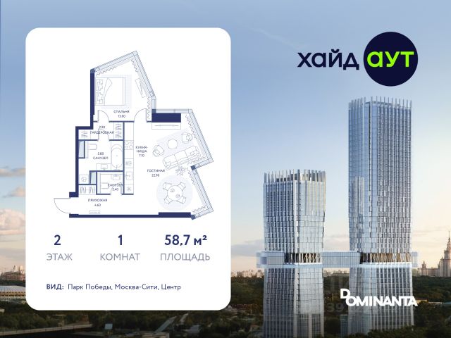 Прямая продажа от застройщика! Продается 1-комнатная квартира площадью 52.5 кв.м. на 17-м этаже 34-этажного дома в жилом комплексе ХАЙДАУТ с панорамными видами: Парк Победы, Долина реки Сетунь, Москва-Сити, Воробьевы горы. Высота потолков 3,25 м. В проекте действуют привлекательные условия покупки: скидка до 20% при оплате одним платежом (в том числе ипотека). Предложение действует до 30.04.2026 ХАЙДАУТ — премиальный проект компании Dominanta. Это новый уровень жизни и комфорта без компромиссов. Две башни — 34 и 49 этажей — открывают захватывающие виды на Москву. Архитектурной доминантой проекта становится мост, соединяющий башни на высоте 80 метров. Закрытая территория, охрана 24/7, зона экстренной безопасности на подземном уровне, система пожаротушения. На мосту между башнями на 22-м этаже находится общественное пространство SocialHUB — предусмотрено 16 комфортных пространств для работы, отдыха и развлечений с панорамными видами и клубным форматом доступа. Концепция благоустройства ХАЙДАУТ — баланс между природой и технологичным городом будущего. На территории сада предусмотрены 15 зон для отдыха, работы, спорта и детей. Знаковым местом станет центральная площадь с амфитеатром и водопадом — сочетание камней, растений и струящейся воды создает идеальный баланс с природой. Застройщик АО "СЗ "ХАЙДАУТ", ИНН 7729058636, ОГРН 1027739319420. Проектная декларация на сайте наш.дом.рф. Предложение не является публичной офертой.