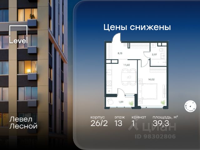 Цена указана с учётом скидки при 100%-й оплате, несубсидированной ипотеке, рассрочке (кроме программы "Рассрочка 0%"). В районе, утопающем в густой зелени лесов, многочисленных парков и скверов, продаётся 1-комнатная квартира площадью 36.70 кв.м без отделки. Квартира расположена на 9 этаже в жилом комплексе комфорт-класса Левел Лесной (компания Level Group/Левел групп). Отличная транспортная доступность: - 25 мин. пешком до станции метро "Пятницкое шоссе"; - 28 мин. на автобусе до станции метро и МЦД-2 "Волоколамская"; - 11 мин. на авто до МКАД; - 25 мин. на авто до ТТК. Продуманный архитектурный проект: - Концепция проекта Левел Лесной от бюро СПИЧ; - Высотность комплекса до 15 этажей с уникальными видами на лесные массивы и город; - Высота потолков до 3 м; - Современные окна высотой до 1,6 м, в части квартир предусмотрены окна в пол. Высота подоконников 0,6 м; Расположение: Жилой комплекс Левел Лесной строится в зелёной зоне ближайшего Подмосковья, г.о. Красногорск в посёлке Отрадное. Шаговая и автомобильная доступность до метро и больших транспортных артерий города. За 25 минут вы дойдёте до станции метро "Пятницкое шоссе", а за 20 минут на машине сможете доехать до станции метро "Тушинская". Район окружен роскошной зеленью лесов и парковых зон, занимающих территорию свыше 1 000 гектаров. Помимо благоприятной экологии, здесь множество возможностей для активного отдыха и поддержания физической формы. Облагороженная территории с полностью развитой инфраструктурой. На территории проекта находится детский сад и школа "Светлые Горы", которая входит в список лучших частных школ от Forbes Education (по данным на 2023г.). Кроме того, в пешей доступности расположено ещё 8 детских садов, а также запланировано открытие современной муниципальной школы. В непосредственной близости находятся сетевые супермаркеты и локальные магазины, аптеки, клиники, почта, библиотека, салоны красоты, рестораны, спортивные и творческие секции, развивающие детские центры. В 12 минутах пешком расположен торговый парк "Отрада" с продуктовым и строительным гипермаркетами, магазинами, кинотеатром и развлечениями для детей. Внутренняя инфраструктура: Мы знаем, как важно, чтобы магазины и сервисы были всегда рядом. В сданных корпусах жилого комплекса Левел Лесной уже расположена полностью готовая развитая инфраструктура. На первых этажах корпуса 27 предусмотрено ещё 14 коммерческих помещений. Благоустройство: Продуманное пространство и аура приватного европейского городка рождают чувство лёгкости и расслабления у каждого, кто попадает на территорию проекта. Концепцию общественных площадок разработали в партнёрстве два архитектурных бюро: "Хайлайт Архитектура" (Highlight Architecture) и "Скейп" (Scape). В безопасных дворах без машин каждый обязательно найдёт себе место для вдохновения, отдыха и спорта.