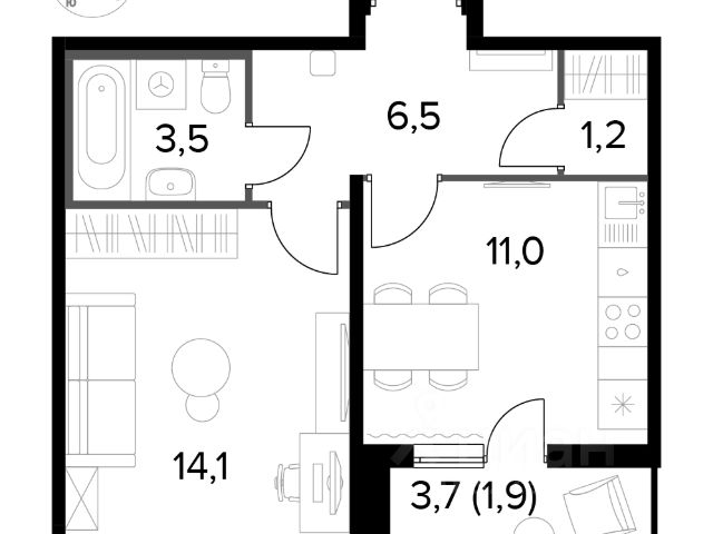 • ✅ Минимальная площадь: 19,3 м²