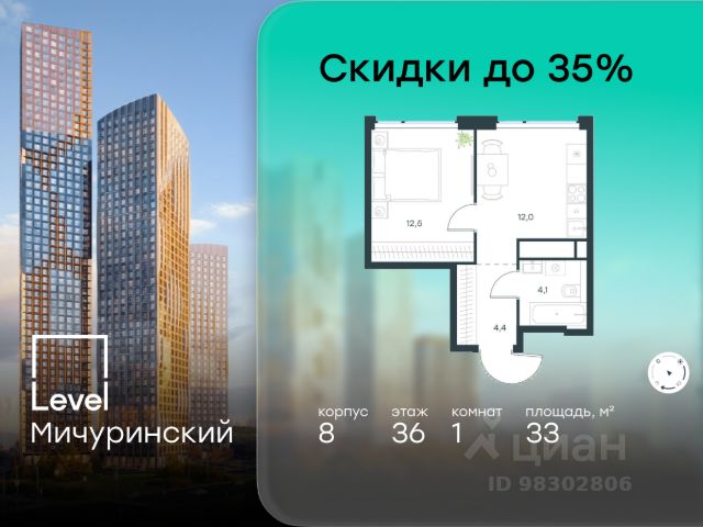 Номер лота: 81 Продается Квартира в ЖК "ОМ" по адресу Москва, Мичуринский проспект, д. 72а Общая площадь квартиры - 43,50 кв. м., этаж 12. Стоимость квартиры - 22 580 737 р. "ОМ" - единственный клубный дом на Юго-Западе Москвы. Современный дом бизнес-класса в окружении парков. Светлые квартиры с потолками от 3 метров и панорамным остеклением. Безопасная территория под круглосуточной охраной и видеонаблюдением. Комфортное проживание с подземным паркингом и объектами street retail на первом этаже. Расположение 2 минуты пешком до Очаковского парка 10 минут пешком до парка Олимпийской деревни 10 минут до станции метро "Мичуринский проспект" 12 минут до станции метро "Озёрная" 15 минут до центра Москвы Архитектура В основе архитектурного облика ЖК лежит контраст между двумя башнями, который достигается за счет характерных особенностей обоих объемов и применения различных материалов отделки. Фасады жилого комплекса облицованы белыми полуматовыми керамическими панелями, промежутки между окнами зашиты темными стальными листами. На фасадах двух корпусов считывается много акцентных деталей в виде горизонтальных фасок между этажами. "ОМ" - жилой комплекс из двух башен, высотностью 23 этажа. Архитектурная концепция проекта - современность и экологичность. Это выражается в зелёном дворе и элементах фасада, выполненных из природных материалов - камня и гранита. Ключевые преимущества: - бизнес-класс; - приватность (клубный дом на 236 квартир); - безопасность (охрана и видеонаблюдение); - комфорт (двухуровневый подземный паркинг на 180 машиномест); - инфраструктура (street retail на первом этаже); - светлые квартиры (панорамное остекление, потолки выше 3 метров); - экологичность (дом окружен многочисленными парками с водоёмами); Единение с природой Дом расположен в экологичном районе Москвы. Здесь нет промышленных предприятий, район окружён зелёными парками и прудами. В 2 минутах ходьбы от ЖК "ОМ" находится Очаковский парк: на его территории есть большой пруд, детские и спортивные площадки, церковь и смотровая площадка. Через дорогу в 10 минутах находится парк Олимпийской деревни, где можно взять напрокат велосипеды, самокаты, ролики и устроить спортивную прогулку. Также есть оборудованные детские площадки, канатный парк, пруды с фонтанами и амфитеатр со сценой. Наука и культура рядом В округе сосредоточены известные НИИ и вузы, среди которых МГУ, МГИМО, РАНХиГС, МПГУ, Московский технологический университет, Военная академия Генштаба. Для любителей культурного досуга в пешей доступности находится концертный комплекс Московской государственной академической филармонии - Филармония-2. Квартиры в комплексе доступны по 100% оплате и в ипотеку.