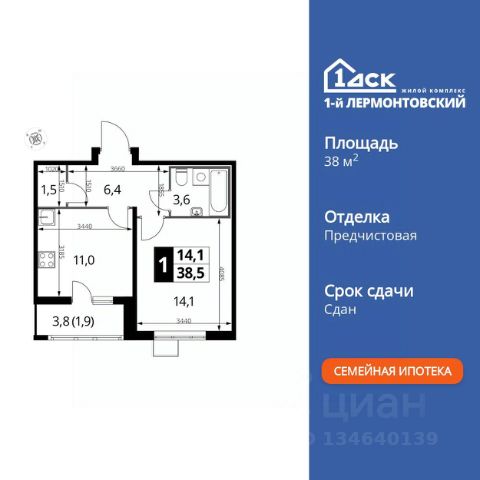 Прямая продажа от застройщика! Жилой Комплекс класса Комфорт Плюс. Продаётся 1-к квартира номер 403 общей площадью 34.3 кв.м. на 16-м этаже 24 этажного здания. Предчистовая отделка. Цена с учётом скидки. Особенности квартиры: - Организуем показ в удобное для вас время! - Просторная спальня, в которой можно разместить большую кровать. - Линейная планировка - максимальная функциональность и удобство. - Ниша под шкаф - компактное и удобное место для вещей. - Лоджия - уютное место для отдыха и тишины. Квартира с предчистовой отделкой. Вам не придется заниматься черновыми и трудоёмкими работы, а чистовую отделку и дизайн - сделайте на свой вкус. Информация о комплексе: "1-й Лермонтовский": современные подъезды, двор без машин и подземный паркинг. ЖК гармонично вписан в зелёное окружение Люберецкого парка и Жулебинского лесопарка, гранича с развитыми районами Некрасовка и "Красная Горка". Удобная транспортная доступность и активный отдых на природе создают баланс между спокойствием и динамикой городской жизни. Транспортная доступность: В шаговой доступности ж/д станция "Люберцы-1". 5 минут на автомобиле до станций метро "Некрасовка", "Котельники", "Лермонтовский проспект" Внутренняя инфраструктура: На территории комплекса создана безбарьерная среда для свободного перемещения. Здесь есть всё для активного отдыха и спокойного времяпрепровождения: игровые площадки для детей, зоны воркаута, спортивные комплексы и пешеходные аллеи. В шаговой доступности: 4 школы, 7 детских садов, спортивные и танцевальные секции, поликлиники, а также магазины включая "Ашан" и крупные ТЦ. Идеальная инфраструктура для комфортной жизни. Квартира с предчистовой отделкой - ваш дизайн без черновых работ