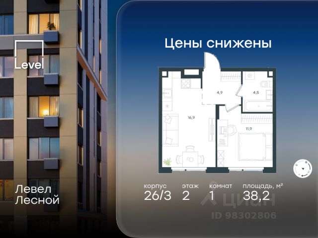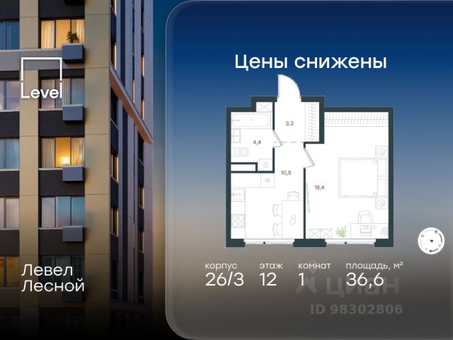 Цена указана с учётом скидки при 100%-й оплате, несубсидированной ипотеке, рассрочке (кроме программы "Рассрочка 0%"). В районе, утопающем в густой зелени лесов, многочисленных парков и скверов, продаётся 1-комнатная квартира площадью 36.70 кв.м без отделки. Квартира расположена на 9 этаже в жилом комплексе комфорт-класса Левел Лесной (компания Level Group/Левел групп). Отличная транспортная доступность: - 25 мин. пешком до станции метро "Пятницкое шоссе"; - 28 мин. на автобусе до станции метро и МЦД-2 "Волоколамская"; - 11 мин. на авто до МКАД; - 25 мин. на авто до ТТК. Продуманный архитектурный проект: - Концепция проекта Левел Лесной от бюро СПИЧ; - Высотность комплекса до 15 этажей с уникальными видами на лесные массивы и город; - Высота потолков до 3 м; - Современные окна высотой до 1,6 м, в части квартир предусмотрены окна в пол. Высота подоконников 0,6 м; Расположение: Жилой комплекс Левел Лесной строится в зелёной зоне ближайшего Подмосковья, г.о. Красногорск в посёлке Отрадное. Шаговая и автомобильная доступность до метро и больших транспортных артерий города. За 25 минут вы дойдёте до станции метро "Пятницкое шоссе", а за 20 минут на машине сможете доехать до станции метро "Тушинская". Район окружен роскошной зеленью лесов и парковых зон, занимающих территорию свыше 1 000 гектаров. Помимо благоприятной экологии, здесь множество возможностей для активного отдыха и поддержания физической формы. Облагороженная территории с полностью развитой инфраструктурой. На территории проекта находится детский сад и школа "Светлые Горы", которая входит в список лучших частных школ от Forbes Education (по данным на 2023г.). Кроме того, в пешей доступности расположено ещё 8 детских садов, а также запланировано открытие современной муниципальной школы. В непосредственной близости находятся сетевые супермаркеты и локальные магазины, аптеки, клиники, почта, библиотека, салоны красоты, рестораны, спортивные и творческие секции, развивающие детские центры. В 12 минутах пешком расположен торговый парк "Отрада" с продуктовым и строительным гипермаркетами, магазинами, кинотеатром и развлечениями для детей. Внутренняя инфраструктура: Мы знаем, как важно, чтобы магазины и сервисы были всегда рядом. В сданных корпусах жилого комплекса Левел Лесной уже расположена полностью готовая развитая инфраструктура. На первых этажах корпуса 27 предусмотрено ещё 14 коммерческих помещений. Благоустройство: Продуманное пространство и аура приватного европейского городка рождают чувство лёгкости и расслабления у каждого, кто попадает на территорию проекта. Концепцию общественных площадок разработали в партнёрстве два архитектурных бюро: "Хайлайт Архитектура" (Highlight Architecture) и "Скейп" (Scape). В безопасных дворах без машин каждый обязательно найдёт себе место для вдохновения, отдыха и спорта.