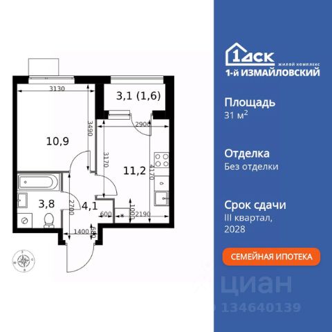 Прямая продажа от застройщика! Жилой Комплекс Комфорт класса. Продаётся 1-к квартира номер 598 общей площадью 33.4 кв.м. на 13-м этаже 32 этажного здания. Предчистовая отделка. Особенности квартиры: - Организуем показ в удобное для вас время! - Мастер-зона с гардеробной. Просторное место для отдыха и удобного хранения вещей. - Просторная спальня, в которой можно разместить большую кровать. - Линейная планировка - максимальная функциональность и удобство. - Гибкая планировка - создайте пространство по своему вкусу. - Место для игры/занятия спортом - идеальное пространство для активных детей. - Линейная кухня - функциональность и практичность в одном решении. - Гардеробная - удобство для хранения и организации вещей. - Лоджия - уютное место для отдыха и тишины. Квартира с предчистовой отделкой. Вам не придется заниматься черновыми и трудоёмкими работы, а чистовую отделку и дизайн - сделайте на свой вкус. Информация о комплексе: ЖК "1-й Измайловский" в восточной части Москвы: идеальное место для жизни в окружении 14 000 гектаров леса. Наслаждайтесь лыжными прогулками зимой и пробежками летом в сиреневом саду и лесопарках. Комплекс отгорожен от шоссе застройкой первой линии и садами здоровья. Из окон открываются виды на парк "Лосиный остров" и зеленые дворы. Близость к природе и спортивным объектам создаёт атмосферу здорового образа жизни. Транспортная доступность: Не более 2,5 км до станций метро "Щёлковская" и "Черкизовская" и МЦК "Локомотив". Щёлковское шоссе соединяет квартал с Северо-восточной хордой и МКАД, Центральным автовокзалом и Восточным железнодорожным вокзалом. Две автобусные остановки в паре минут ходьбы и 11 маршрутов общественного транспорта. На автомобиле 3 минуты до СВХ 12 минут до ТТК 15 минут до Садового кольца Внутренняя инфраструктура: ЖК расположен в историческом районе Москвы с развитой инфраструктурой. В шаговой доступности: 6 детских садов (включая собственный на 125 мест), 3 школы, поликлиники, торговые центры и парки. Проект создан для здорового образа жизни: рядом стадионы, спортивные объекты для футбола, баскетбола и конного спорта, а также более 30 км беговых и велодорожек. Всё для активной жизни в окружении зелени и современной инфраструктуры. Квартира с предчистовой отделкой - ваш дизайн без черновых работ