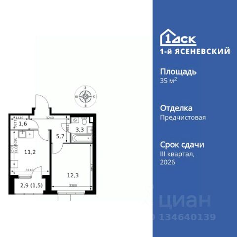 Прямая продажа от застройщика! Жилой Комплекс класса Комфорт Плюс. Продаётся 1-к квартира номер 127 общей площадью 35.2 кв.м. на 8-м этаже 18 этажного здания. Предчистовая отделка. Цена с учётом скидки. Особенности квартиры: - Квартиры рядом с метро - м. Корниловская 9 мин пешком - 63 га лесопарка за окнами - Школа c ИТ-кластером и бассейном. 2 детских сада - Организуем показ в удобное для вас время! - Линейная планировка - максимальная функциональность и удобство. - Увеличенная ширина окна/окон - больше света и визуального простора. - Можно оборудовать рабочее место - комфорт для работы и учёбы. - Ниша под шкаф - компактное и удобное место для вещей. - Лоджия - уютное место для отдыха и тишины. Квартира с предчистовой отделкой. Вам не придется заниматься черновыми и трудоёмкими работы, а чистовую отделку и дизайн - сделайте на свой вкус. Информация о комплексе: ЖК "1-й Ясеневский": преимущества городской инфраструктуры и природы. Пешая доступность к метро, школе с бассейном и ИТ-кластеру, а также 63 га Троицкого лесопарка под окнами. Закрытая территория с бульварами, велодорожками, кафе и дворами без машин. Фруктовые деревья и городские сады создают уникальную атмосферу. Всего в 1 км от МКАД - идеальный баланс для современной жизни. Транспортная доступность: До метро "Корниловская" - 12 минут пешком До метро "Тютчевская" - 25 минут пешком До метро "Теплый стан" - 10 минут на транспорте До метро "Ольховая" - 30 минут на общественном транспорте Личный автотранспорт: Выезд на Калужское шоссе - 500 м МКАД - 1 км Внутренняя инфраструктура: ЖК "1-й Ясеневский" - идеальное место для семей с детьми. Рядом Троицкий лесопарк для прогулок, а во дворах - современные детские площадки, разработанные с участием психологов. В шаговой доступности два детских сада и школа на 1100 мест с ИТ-кластером, бассейном и классами робототехники. Всё для счастливого детства и успешного будущего. Квартира с предчистовой отделкой - ваш дизайн без черновых работ