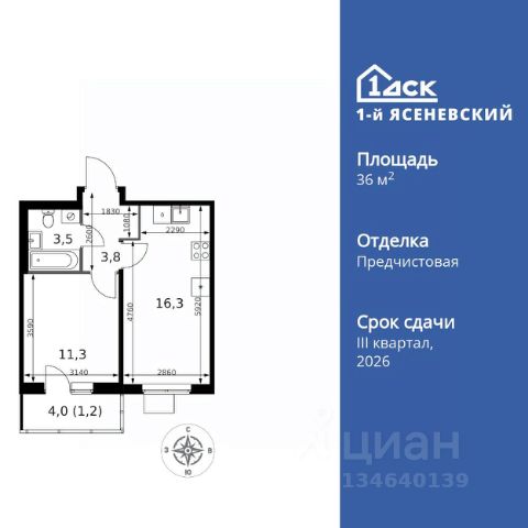 Прямая продажа от застройщика! Жилой Комплекс класса Комфорт Плюс. Продаётся 1-к квартира номер 374 общей площадью 36.1 кв.м. на 9-м этаже 9 этажного здания. Предчистовая отделка. Цена с учётом скидки. Особенности квартиры: - Квартиры рядом с метро - м. Корниловская 9 мин пешком - 63 га лесопарка за окнами - Школа c ИТ-кластером и бассейном. 2 детских сада - Организуем показ в удобное для вас время! - Линейная планировка - максимальная функциональность и удобство. - Увеличенная высота потолков - ощущение простора и легкости. - Просторная кухня - место для семейных ужинов и кулинарных экспериментов. - Просторная мягкая зона - комфорт и уют для отдыха всей семьи. - Ниша под шкаф - компактное и удобное место для вещей. - Балкон - открытое пространство для отдыха. Квартира с предчистовой отделкой. Вам не придется заниматься черновыми и трудоёмкими работы, а чистовую отделку и дизайн - сделайте на свой вкус. Информация о комплексе: ЖК "1-й Ясеневский": преимущества городской инфраструктуры и природы. Пешая доступность к метро, школе с бассейном и ИТ-кластеру, а также 63 га Троицкого лесопарка под окнами. Закрытая территория с бульварами, велодорожками, кафе и дворами без машин. Фруктовые деревья и городские сады создают уникальную атмосферу. Всего в 1 км от МКАД - идеальный баланс для современной жизни. Транспортная доступность: До метро "Корниловская" - 12 минут пешком До метро "Тютчевская" - 25 минут пешком До метро "Теплый стан" - 10 минут на транспорте До метро "Ольховая" - 30 минут на общественном транспорте Личный автотранспорт: Выезд на Калужское шоссе - 500 м МКАД - 1 км Внутренняя инфраструктура: ЖК "1-й Ясеневский" - идеальное место для семей с детьми. Рядом Троицкий лесопарк для прогулок, а во дворах - современные детские площадки, разработанные с участием психологов. В шаговой доступности два детских сада и школа на 1100 мест с ИТ-кластером, бассейном и классами робототехники. Всё для счастливого детства и успешного будущего. Квартира с предчистовой отделкой - ваш дизайн без черновых работ