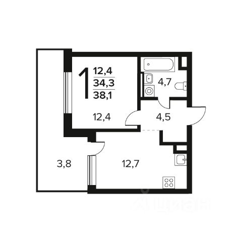 • ✓ В базе Циан 55 1-комнатных квартир без ремонта в жилом районе Новые Ватутинки в Москве