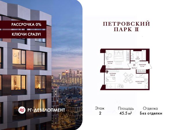 Рассрочка 0%. Первый платёж 30%, второй - не позднее 31.12.2026 г. Продаётся 1-комнатная квартира 52.9 кв.м. в ЖК "Петровский парк II" на 4-м этаже 24 этажного дома. ЖК "Петровский парк II" — жилой комплекс в Савёловском районе, где город ощущается иначе. Здесь история и масштаб Москвы не давят, а задают фон для спокойной, уверенной жизни рядом с центром. Это место, где статус читается не в громких формулировках, а в окружении, архитектуре и ощущении пространства. Коротко о важном: • Район с глубоким историческим контекстом и парковым окружением; • 5 минут пешком до метро "Динамо", рядом с деловой и культурной жизнью города; • Редкое сочетание: энергия мегаполиса и тишина зелёных аллей; • Архитектура от бюро Синтаксис с пластикой форм и индивидуальным характером фасадов; • Панорамные виды на город и зелёные массивы Петровского и Тимирязевского парков; • Закрытый двор без машин, вдохновлённый эстетикой дворцовых садов; • Просторные входные группы с высокими потолками и выверенной, респектабельной эстетикой; • Частный детский сад во дворе; • Подземная парковка и кладовые; • РГ-Девелопмент - ТОП-20 крупнейших застройщиков Москвы. Расположение комплекса формирует особое ощущение свободы выбора. Утром - прогулка по тенистым аллеям Петровского парка, днём - работа и встречи в деловых кластерах поблизости, вечером - культурные события, рестораны и городские пространства в нескольких минутах пути. Здесь расстояния измеряются не километрами, а шагами от дома. Архитектура "Петровского парка II" задумана как современный архитектурный акцент района и одновременно как уважительный диалог с исторической средой. Асимметричные объёмы, волнообразные элементы и игра света и тени создают выразительный, но сдержанный силуэт. Архитектура наполнена воздухом и визуальным ритмом, оставаясь спокойной и уверенной. Общественные пространства продолжают эту логику. Два парадных вестибюля с высокими потолками и благородной цветовой палитрой воспринимаются как пространства, где хочется замедлиться: встретить гостей, перевести дыхание после дня или просто почувствовать уровень среды, в которой вы живёте. Внутренний двор комплекса - это отдельный мир, закрытый от машин и городского шума. Продуманное благоустройство территорий отсылает к регулярным дворцовым садам: геометрия аллей, зелёные "кабинеты", цветники и камерные зоны отдыха создают разные сценарии для повседневной жизни. Здесь органично соседствуют детские игровые пространства, спортивные зоны и тихие места для отдыха. На территории комплекса расположены магазины, кафе и рестораны, а также частный детский сад, встроенный в общую структуру двора. Подземная парковка и кладовые поддерживают ощущение порядка и цельности пространства.