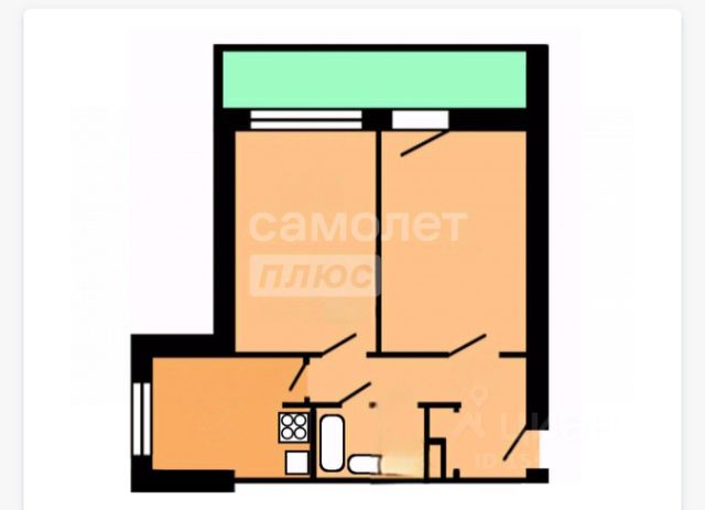 Кухня 7 кв.м, изолированные комнаты 14 кв.м и 10.5 кв.м, совмещённый санузел, лоджия на 2 комнаты.