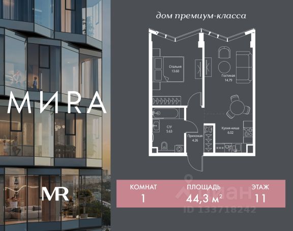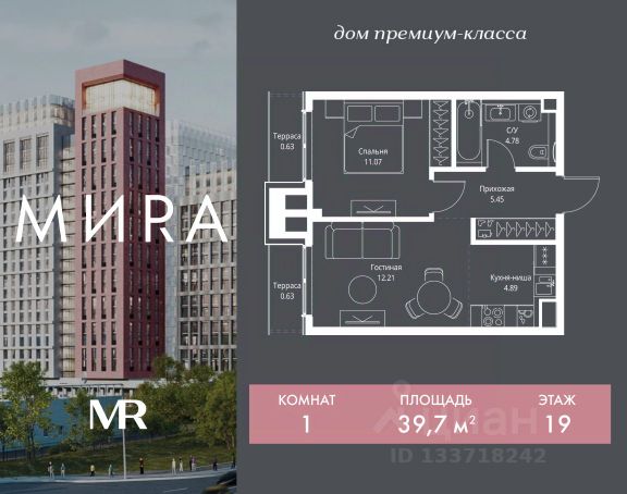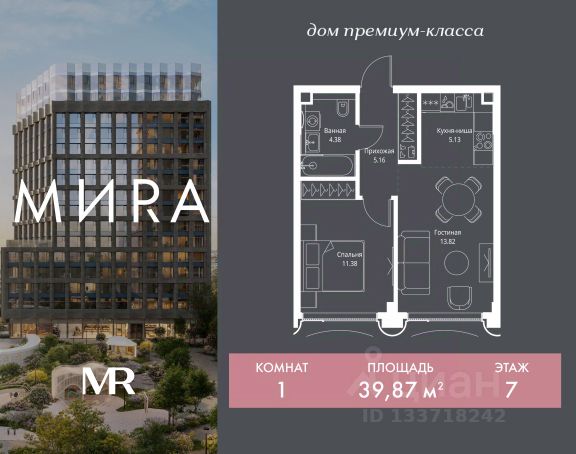 Прямая продажа от застройщика. Продаётся 1-комнатная квартира общей площадью 35.68 м² без отделки в доме премиум-класса МИRА на 3-м этаже 24 этажного дома. Квартира расположена в корпусе 3. Дом премиум-класса МИRA это: • Спокойный район с богатой историей и сложившейся инфраструктурой • Авторская архитектура на стыке классики и современности • Вход в парк прямо из жилого комплекса • Панорамные виды на Яузу, парки, ВДНХ и скульптуру "Рабочий и колхозница" • Удобные сервисы и безопасность для каждого резидента Расположение: Жилой квартал расположен в Алексеевском районе на северо-востоке Москвы, на второй линии домов, таким образом вы сможете дистанцироваться от шума и суеты проспекта Мира, но при этом будете жить недалеко от этой важной городской магистрали. Прямо у дома: • Парк Акведук • Река Яуза • Памятник "Рабочий и колхозница" Пешком: • 16 мин м. ВДНХ На автомобиле: • 12 мин ТТК • 15 мин Садовое кольцо • 12 мин Национальный парк "Лосиный остров" Благоустройство: Концепция благоустройства от бюро "ДРУЖБА" разработана в стиле "Лесная тропа". В уютном дворе расположились словно затерянные в лесу, площадки для отдыха. Они разделяются островками с травами, кустарниками, крупными камнями и деревьями, между которыми проходят узкие песчаные тропинки с деликатной подсветкой по вечерам. Центральной точкой притяжения для жителей станет главная площадь с фонтаном, которая открывается сразу из двух входных групп. Внутренний двор МИRA: • Детская площадка с зонами для игр малышей до трех лет и детей более старшего возраста • Спортивная площадка с профессиональным оборудованием для тренировок • Декоративные перголы • Воздушный арт-объект с подсветкой, похожий на облако • Чайный домик, где в отдельном отапливаемом павильоне можно в любое время года попить кофе с соседями или устроить камерное семейное чаепитие • Зоны для работы и отдыха с гамаком под навесом, скамейками и креслами Инфраструктура и окружение: В Алексеевском районе есть огромные благоустроенные парки, магазины, гимназии с высоким рейтингом и филиалы ВУЗов, частные и государственные детские сады, модные кофейни и фитнес-центры. В квартале МИRА предусмотрены: • 2 ресторана с видом на парк Акведук • 3 кафе • фитнес-студия • подземный паркинг на 330 машино-мест Компания MR предлагает своим клиентам специальные условия приобретения квартир в рамках программ ипотечного кредитования от банков-партнеров.