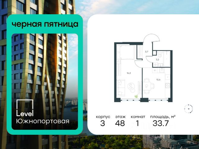 Квартира в рассрочку от девелопера. Первый взнос от 20%, срок на 6 или 12 месяцев. Подробные расчёты можно получить в доме продаж. Прямая продажа от застройщика. В жилом квартале, расположенном в Даниловском районе Москвы, продаётся 1-комнатная квартира площадью 47.90 кв.м без отделки. Квартира расположена на 3 этаже 27-этажного дома, корпус 3, в жилом квартале бизнес-класса RiverSky, который является частью жилого квартала FORIVER. Девелопер проекта - Sminex, который создаёт самую комфортную и престижную среду для жизни и работы. Преимущества комплекса: • Европейская архитектура домов, • Дизайнерские входные группы и общественные зоны, • Авторская концепция благоустройства квартала, интегрированного с Симоновской набережной Москвы-реки. На территории комплекса собственный детский сад с охраняемой территорией. Роскошный двор-сад с детскими и спортивными площадками, тихими зонами, прогулочными аллеями, местами отдыха. Отличная транспортная доступность: • От границ квартала до станции метро Автозаводская 1,3 км, можно дойти за 16 минут. • С территории есть выезды в сторону ТТК, путь составит 3 минуты на автомобиле, и в сторону центра города. • Садовое кольцо находится в 3 км, а дорога до Кремля займёт 9 минут. Расположение: Проект расположен на Восточной улице в Даниловском районе Москвы. Этот исторический район столицы на берегу живописной Симоновской набережной и ансамбля Симонова монастыря. Рядом с кварталом создаётся спортивный кластер вокруг нового стадиона Торпедо. В состав проекта входит физкультурно-оздоровительный комплекс, в стенах которого открыты секции бокса, залы единоборств, секции командных видов спорта, тенниса, лёгкой атлетики и йоги. Стоимость квартиры - 26 870 000 Р. Дом сдан. Более подробную информацию по объекту уточняйте по телефону и в отделе продаж.