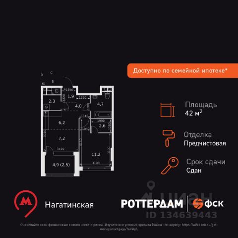 Прямая продажа от застройщика! Жилой Комплекс бизнес-класса на набережной возле Нагатинского причала. Продаётся 1-к квартира номер 82 общей площадью 42.6 кв.м. на 12-м этаже 29 этажного здания. Предчистовая отделка. Цена с учётом скидки. Особенности квартиры: - Организуем показ в удобное для вас время! - Мастер-зона с гардеробной. Просторное место для отдыха и удобного хранения вещей. - Линейная планировка - максимальная функциональность и удобство. - Линейная планировка - максимальная функциональность и удобство. - Увеличенная ширина окна/окон - больше света и визуального простора. - Просторная ванная - место для расслабления и уединения. - Постирочная - организуйте пространство для стирки и сушки вещей. - Евроформат - просторное и удобное жилье с отличной планировкой. - Гибкая планировка - создайте пространство по своему вкусу. - Гардеробная - удобство для хранения и организации вещей. - Просторная лоджия - идеальное место для уютных вечеров. Квартира с предчистовой отделкой. Вам не придется заниматься черновыми и трудоёмкими работы, а чистовую отделку и дизайн - сделайте на свой вкус. Информация о комплексе: ЖК "Роттердам": идеальная транспортная доступность для любого настроения. Пешая доступность до метро, удобный выезд на Варшавское шоссе к ТТК и Садовому кольцу, а также живописная Нагатинская набережная с маршрутом до Кремля. Выбирайте метро, автомобиль, трамвай или велопрогулки вдоль реки - всё под рукой. Транспортная доступность: Всего в 5 минутах пешком до метро Нагатинская и 8 минутах от МЦК Верхние Котлы. Рядом Аэроэкспресс до метро Домодево. До ТТК 2,2 км и 4,9 км до Садового кольца. Внутренняя инфраструктура: ЖК "Роттердам": идеальный баланс работы и отдыха на Нагатинской набережной. Коворкинги, детские площадки и игровой центр для всей семьи. Рядом - 5 парков, спортивные и деловые центры в шаговой доступности. Архитектура сочетает высотные и малоэтажные здания без ощущения "каменных джунглей". Панорамные виды из окон верхних этажей и прямой выход к Москве-реке. Уединённость, безопасность и комфорт для тех, кто ценит личное пространство и время. Квартира с предчистовой отделкой - ваш дизайн без черновых работ