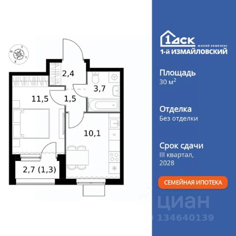 Просторная 1-комнатная квартира для молодой семьи. Общая площадь - 47.4м2, удобная планировка, кухня-гостиная 22.8м2. Панорамные виды из окон на две стороны - на национальный парк "Лосиный остров" и благоустроенный внутренний двор. Условия покупки: - Скидка при полной оплате - 10% - Ипотека от 3,5% на весь срок или 0,11% на первый год - Рассрочка без процентов - Trade-in с проживанием на время строительства дома НАЗАРЕ - шесть домов бизнес-класса высотой 24-43 этажа. Проект расположен рядом с национальным парком "Лосиный остров" и парком "Сокольники". В продаже квартиры с мастер-спальнями, кухнями-гостиными, открытыми террасами, просторными кладовыми и ванными с окном. Форматы - от светлых студий 21,6 м2 до семейных 4-комнатных 125,5 м2. Часть лотов - с предчистовой отделкой White Box. Транспортная доступность: - Метро "Бульвар Рокоссовского" и МЦК - 2 мин. пешком - Северо-Восточная хорда - 3 мин. на автомобиле - Третье транспортное кольцо - 15 мин. на автомобиле - Садовое кольцо - 18 мин. на автомобиле Инфраструктура: В составе проекта появится собственный детский сад и торгово-развлекательный центр с акцентом на шопинг и досуг. На первых этажах домов откроются кафе, пекарни, магазины и службы сервиса. В районе Богородское находятся престижные школы, медцентры, магазины и спортивные клубы.
