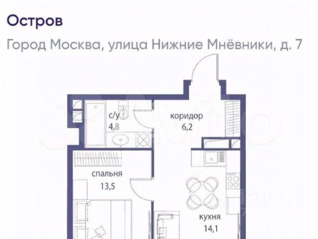 Жилой квартал "Остров" это настоящий город в городе, занимающий 40 гектаров живописной Мнёвниковской поймы. Тридцать девять корпусов переменной этажности, часть из которых выходит на первую линию Москвы-реки, образуют уникальное пространство для взыскательных ценителей качества жизни. Концепция all inclusive включает в себя Центральный парк с благоустроенными набережными, изысканные кафе и рестораны, современный торговый центр, детские сады и школы. Особого внимания заслуживают тематические дворы луговой, водный, ландшафтный с живописным ручьём или уютным амфитеатром, каждый из которых представляет собой законченное произведение ландшафтного искусства.