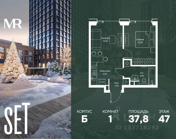 Прямая продажа от застройщика. В ЖК Сет продается 1-комнатная квартира площадью 31.05 м², расположенная в корпусе Б, на 53 этаже 59 этажного дома. Сет имеет стратегически выгодное расположение в ЗАО, в районе с большой историей и блестящим будущим: между природной зоной долины реки Сетунь и Кутузовским проспектом. В рамках возведения первой очереди предусмотрено три корпуса высотой 18, 45 и 59 этажей. На верхних этажах спроектированы общедоступные смотровые площадки с панорамным обзором на центр столицы. Преимущества проекта: • Функциональные планировочные решения • Контроль проникновения через входную дверь • Система управления освещением и температурой в квартире • Система защиты от протечек с функцией перекрытия воды • Вход в подъезд по биометрическим считывателям Face ID • Скоростные лифты • Двухуровневый подземный охраняемый паркинг на 495 машино-мест Застройка Сет включает в себя не только жилые корпуса, но и инфраструктурные объекты. Все необходимое для повседневного комфорта будет расположено в шаговой доступности: • Фитнес-клуб с бассейном • Ведущая городская школа, детский сад и школа искусств • Центр культуры и досуга • Медицинский центр • Кафе и рестораны Расположение комплекса: Пешком: • Метро "Давыдково" - 17 минут • Парк "Долина реки Сетунь" - 3 минуты • Открытие новых станций метро в шаговой доступности в будущем Инфраструктура: Разнообразить свой день резиденты Веер смогут также проводя больше времени на свежем воздухе. Двор разделен на 4 зоны разных эмоций и действий, которые пересечены и соединены веерными прогулочными маршрутами: • Спортивная площадка устроена в глубине ""Кленовой рощи"" • В ""Чайном домике"" будет создан навес с утеплением для отдыха в любую погоду • Площадки для детей воплотятся в ""Волшебный лес"" с цветами, зеркалами и световым дизайном • ""Центральная площадь"" устроена у водного оазиса живописного пруда. На машине: • "Москва-Сити" - 15 минут • Садовое кольцо - 20 минут • ТЦ "Океания" - 8 минут • ТЦ "Времена года" - 13 минут • Сколково - 12 минут • Гребной канал - 17 минут Компания MR предлагает своим клиентам специальные условия приобретения квартир в рамках программ ипотечного кредитования от банков-партнеров.