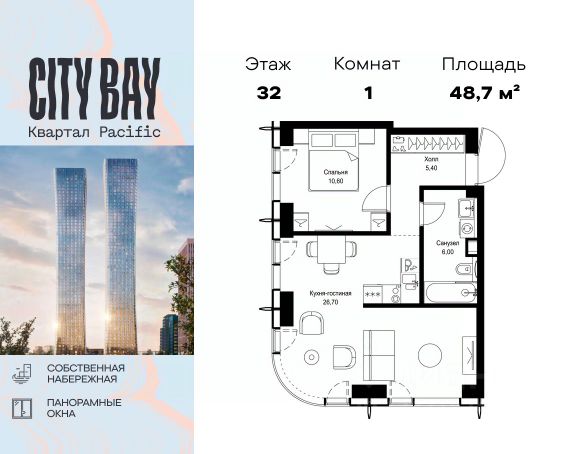 Прямая продажа от застройщика. Продаётся 1-комнатная квартира общей площадью 42.50 м² без отделки в ЖК City Вау, квартале Pacific, на 6-м этаже 59 этажного дома. Концепция жилого комплекса City Вау - настоящий город в городе с отлично развитой инфраструктурой и собственной благоустроенной набережной. На территории жилого комплекса расположено пять кварталов - Atlantic, Pacific, Indian, North, Cliff. Жилой квартал City Вау отличается оригинальной концепцией и выделяется среди других проектов такими характеристиками как: - Архитектура, - Виды из окон, - Природное окружение, вызывая гордость у жителей и восхищение у прохожих. Вся жизнь района Покровское-Стрешнево строится вокруг водных объектов: - Пойма реки Сходни с уникальной экосистемой, - Речка Химка и Химкинское водохранилище, - Москва-река, - Канал имени Москвы. Кругом вода, и местные с удовольствием этим пользуются. А сразу за рекой - центр водного спорта в Строгино с вейк-парком и яхт-клубами. Помимо воды, здесь очень много зелени: - Рядом Сходненский ковш памятник природы, естественный амфитеатр глубиной 40 метров; - Парк при усадьбе Братцево с фруктовым садом; - Дубовая роща "Маяк", - Алешкинский лес; - Лесопарк Покровское-Стрешнево с пляжами и бобрами. Главные транспортные артерии района: - Волоколамское шоссе, - Таганско-Краснопресненская линия метро и МЦД-2. Всего за 20 минут можно добраться до центра на машине или метро, а МЦД связывает ЖК City Вау с северными, восточными и юго-восточными районами. Компания MR предлагает своим клиентам специальные условия приобретения квартир в рамках программ ипотечного кредитования от банков-партнеров.