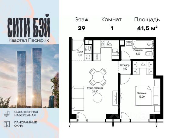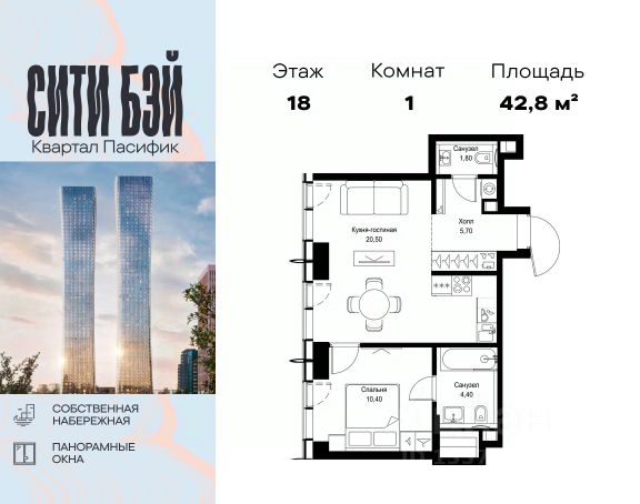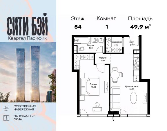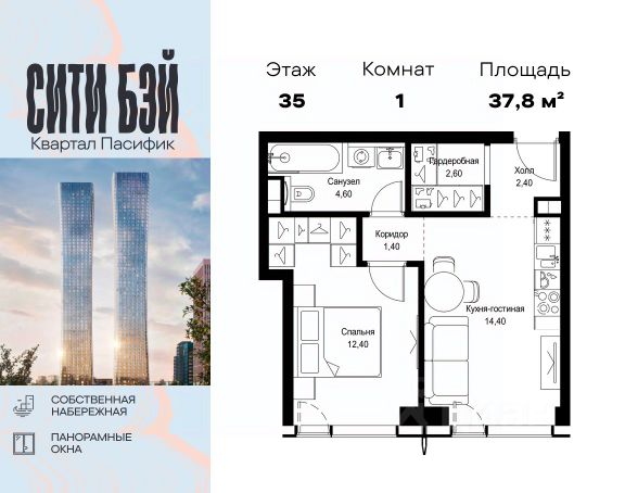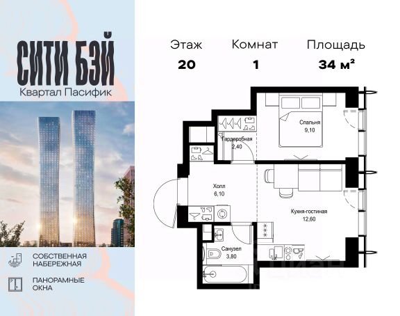 Прямая продажа от застройщика. Продаётся 1-комнатная квартира общей площадью 32.90 м² без отделки в ЖК Сити Бэй, квартале Пасифик, на 12-м этаже 59 этажного дома. Концепция жилого комплекса Сити Бэй - настоящий город в городе с отлично развитой инфраструктурой и собственной благоустроенной набережной. На территории жилого комплекса расположено пять кварталов - Атлантик, Пасифик, Индиан, Норс, Клиф. Жилой квартал Сити Бэй отличается оригинальной концепцией и выделяется среди других проектов такими характеристиками как: - Архитектура, - Виды из окон, - Природное окружение, вызывая гордость у жителей и восхищение у прохожих. Вся жизнь района Покровское-Стрешнево строится вокруг водных объектов: - Пойма реки Сходни с уникальной экосистемой, - Речка Химка и Химкинское водохранилище, - Москва-река, - Канал имени Москвы. Кругом вода, и местные с удовольствием этим пользуются. А сразу за рекой - центр водного спорта в Строгино с вейк-парком и яхт-Клубами. Помимо воды, здесь очень много зелени: - Рядом Сходненский ковш памятник природы, естественный амфитеатр глубиной 40 метров; - Парк при усадьбе Братцево с фруктовым садом; - Дубовая роща "Маяк", - Алешкинский лес; - Лесопарк Покровское-Стрешнево с пляжами и бобрами. Главные транспортные артерии района: - Волоколамское шоссе, - Таганско-Краснопресненская линия метро и МЦД-2. Всего за 20 минут можно добраться до центра на машине или метро, а МЦД связывает ЖК Сити Бэй с северными, восточными и юго-восточными районами. Компания MR предлагает своим клиентам специальные условия приобретения квартир в рамках программ ипотечного кредитования от банков-партнеров.