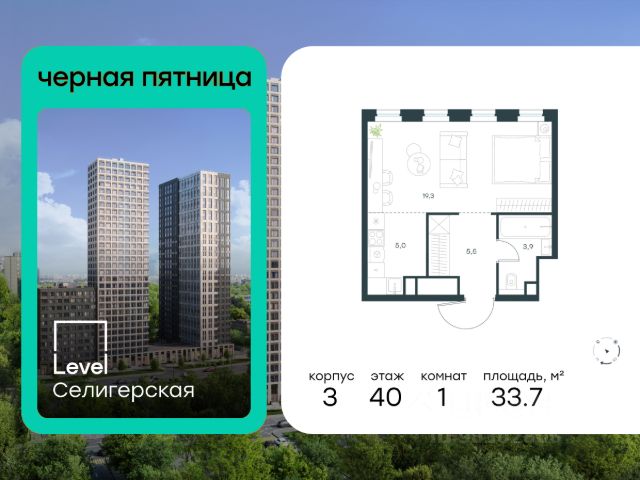 Цена указана с учётом скидки при 100%-й оплате, несубсидированной ипотеке, рассрочке (кроме программы "Рассрочка 0%"). В жилом квартале, расположенном в южной части района Западное Дегунино, продаётся 1-комнатная квартира площадью 34.60 кв.м без отделки. Квартира расположена на 39 этаже 40-этажного корпуса 3 в жилом комплексе комфорт-класса Level Селигерская (компания Level Group/Левел групп). Отличная транспортная доступность: - 10 мин. пешком до станции метро "Селигерская" от корпусов 1-й очереди; - 10 мин. пешком до станции метро "Верхние Лихоборы" от корпусов 2-й очереди; - 20 мин. пешком до станции МЦД-3 "Моссельмаш"; - 11 мин. на авто до МКАД; - 13 мин. на авто до ТТК; - 16 мин. на авто до Садового кольца. Расположение Район отличается богатой социальной инфраструктурой: школы, детские сады, поликлиники, магазины, фитнес-клубы, торговые центры - всё близко к дому. Рядом с Level Селигерская расположено 5 парковых зон. В 3 минутах от дома расположен перспективный сквер-парк. В 10 минутах пешком находится парк им. Святослава Фёдорова, в 13 минутах на велосипеде - парк "Ангарские пруды". В 7-11 минутах на автомобиле - два крупных природных объекта: Тимирязевский парк и Главный ботанический сад Российской академии наук. Благоустройство Внутренние дворы жилого комплекса огорожены от машин, а их функциональное наполнение отличается в зависимости от очереди строительства. На территории 1-й очереди будут: детская площадка, воркаут-зона, места для тихого отдыха и активных игр, а также сенсорный сад и большой луг. Во 2-й очереди жителей ждут уютные навесы с качелями, павильон-читальня, волейбольная площадка, беседки, а также детские и спортивные площадки. Технологии и инженерия Для входа на территорию комплекса предусмотрен единый ключ доступа. Все общественные зоны оснащены камерами видеонаблюдения, по заявке собственнику предоставляется возможность просмотра изображения отдельных видеокамер на его мобильном устройстве. При въезде в паркинг функционирует система распознавания госномеров. Кроме того, для комфорта жителей создано мобильное приложение, с помощью которого можно удаленно контролировать доступ на придомовую и жилую территории. Другие преимущества жилого комплекса - Высокая освещенность квартир: в большинстве из них не меньше трёх окон; - Супермаркет, магазины, кафе, пекарни и многое другое на первых этажах домов; - Частный детский сад; - Стильные дизайнерские лобби с высокими потолками до 4,9 м и окнами в пол, для питомцев предусмотрена лапомойка; - 20+ планировочных решений: от студий до семейных квартир; - С каждого этажа дома на лифте можно спуститься в подземный отапливаемый паркинг. Продается 1-комнатная квартира элитные на проезде Ильменский в Москве.