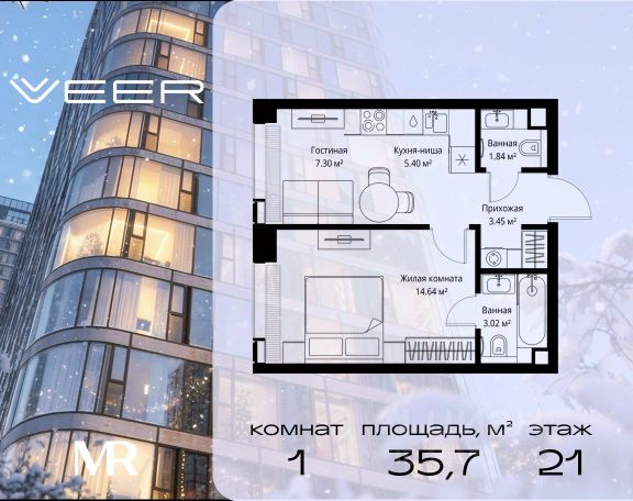 Старт продаж новой очереди! Продаётся 1-комнатная квартира общей площадью 52.89 м² без отделки в ЖК Веер на 6-м этаже 35 этажного дома. Веер.2 — вторая очередь футуристичного квартала бизнес-класса Веер. Это новая экосистема в престижном Западном округе Москвы, поражающая масштабностью внутренней инфраструктуры. ЖК находится всего в 5 минутах от Кутузовского проспекта и в 15 минутах от Сколково. Ансамбль из четырех стеклянных башен с доминантой в 237 метров разработан по принципу современного урбанизма и выражен в лаконичных объемах — параллелепипедах со сглаженными углами, которые придают зданиям утонченный вид. Расположение и транспортная доступность: • Образовательный комплекс в составе топовой школы, состоящий из двух зданий: основное на 1500 школьных и 450 дошкольных мест, отдельное здание детского сада на 300 мест. • Парк "Долина реки Сетунь" площадью более 700 гектаров • Рядом МГУ, МГИМО, РАНХиГС и Академия ФСБ • 15 минут по Кутузовскому проспекту до ужина в центре с видом на Москву-реку • 18 минут пешком до м. "Давыдково" • Открытие новых станций метро в шаговой доступности в будущем Инфраструктура: Двор в Веер.2 — это ассиметричные холмы, каменные "лабиринты", зеленые ковры и хвойные островки с единой живой экосистемой. Здесь есть все: • Павильон умиротворения Место отдыха под навесом в спокойной части двора, окруженное деревьями. • Активная тропа Тактильная дорога из камней разного диаметра для расслабляющих прогулок. • Бизнес-гарден Оборудованное пространство для работы на свежем воздухе со столом и встроенными розетками. • Детская площадка Двухуровневая площадка "Ботаника" с песочницей, переговорной трубой и горкой "Дружба". Компания MR предлагает своим клиентам специальные условия приобретения квартир в рамках программ ипотечного кредитования от банков-партнеров.