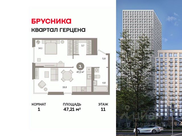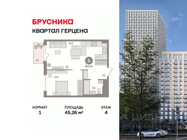 Квартира с кухней-гостиной и одной спальней в Квартале Герцена. Особенности планировки: предчистовая отделка. Эта квартира сейчас в брони, но её ещё не купили. Пожалуйста свяжитесь с менеджером, чтобы узнать подробности. Квартиру можно купить онлайн. В квартире выполнена отделка "под чистовую". Установлены окна с двойным стеклопакетом, радиаторы с терморегуляторами. На полу цементно-песчаная стяжка. В квартиры заведены кабели для интернета и ТВ. Входная сейф-дверь не требует замены. Организован поквартирный учёт энергоресурсов (водоснабжение, отопление, электричество). Квартал "Герцена" расположен в Бирюлёве Восточном — районе на юге Москвы. Дорога до ТТК займет всего полчаса на автомобиле, до станции метро и ж/д станции "Царицыно" — 13 минут, а до автовокзала "Южные ворота" — 20 минут. До автобусных остановок можно дойти пешком. В 2027-2028 году откроется новая станция метро "Лебедянская", дорога до неё займет всего 18 минут. Общая площадь "Квартала Герцена" составляет 27,3 га. Дома состоят из разноуровневых секций высотой от 6 до 55 этажей с видовыми террасами и балконами. На территории квартала будет построена поликлиника, детский сад на 350 мест и воспитательно-образовательный комплекс на 1075 мест, а также рестораны, клиники, магазины и салоны красоты. Объявление от застройщика. Ипотека, материнский капитал. Обмен — один из способов покупки. Обмен подойдёт, если вы хотите быстро поменять старую квартиру на новую. Получить ипотеку или рассрочку, а также обменять квартиру можно онлайн. Запишитесь на онлайн-презентацию по телефону или на сайте. квартиры в нашей базе: ГРЦ01.2-Ж4.3.7.