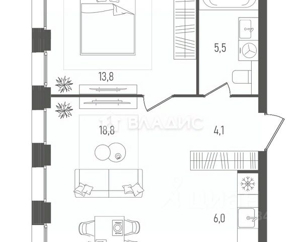 • ✅ Минимальная площадь: 33,2 м²