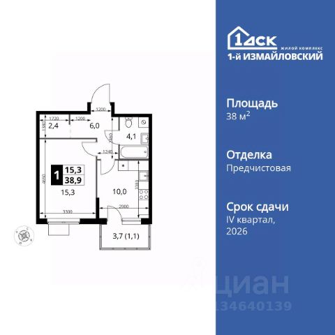 Прямая продажа от застройщика! Жилой Комплекс Комфорт класса. Продаётся 1-к квартира номер 618 общей площадью 39.2 кв.м. на 8-м этаже 15 этажного здания. Отделка Whitebox. Цена с учётом скидки. Особенности квартиры: - Линейная планировка - максимальная функциональность и удобство. - Просторная ванная - место для расслабления и уединения. - Можно оборудовать рабочее место - комфорт для работы и учёбы. - Гардеробная - удобство для хранения и организации вещей. - Балкон - открытое пространство для отдыха. - Панорамное остекление балкона - наслаждайтесь видами из вашего балкона. Квартира с предчистовой отделкой (White box). Вам не придется заниматься черновыми и трудоёмкими работы, а чистовую отделку и дизайн - сделайте на свой вкус. Информация о комплексе: Современный архитектурный проект "1-й Измайловский" - идеальное место для проживания, расположенное в восточной части Москвы в окружении 14 000 гектаров леса. Комплекс пронизан атмосферой здорового образа жизни и благополучия. Сиреневый сад и близлежащие лесопарки - это места, где можно насладиться лыжными прогулками зимой и тонизирующими пробежками летом. Расположенный между Щелковским шоссе и Амурской улицей, "1-й Измайловский" осмысляет себя не столько через близость к городским точкам притяжения, сколько через соседство с зелеными пространствами и спортивными объектами. Он отгорожен от шоссе застройкой первой линии и собственными садами здоровья. В его окнах - изумрудное море парка "Лосиный остров" и густые кроны окрестных дворов. В его графике - занятия спортом и прогулки в Измайлове. Транспортная доступность: Не более 2,5 км до станций метро "Щёлковская" и "Черкизовская" и МЦК "Локомотив". Щёлковское шоссе соединяет квартал с Северо-восточной хордой и МКАД, Центральным автовокзалом и Восточным железнодорожным вокзалом. Две автобусные остановки в паре минут ходьбы и 11 маршрутов общественного транспорта. На автомобиле 3 минуты до СВХ 12 минут до ТТК 15 минут до Садового кольца Внутренняя инфраструктура: Комплекс находится в исторически сложившемся районе Москвы с хорошим качеством и плотностью инфраструктуры. Торговые центры и сетевые магазины -6 детских садов, включая собственный детский сад на 125 мест -3 школы, включая собственную школу -Поликлиники и медицинские центры -Парки и зоны отдыха Расположение архитектурного проекта создает все условия для тех, кто стремится к здоровому образу жизни и для тех, кто уже сделал выбор в его пользу. В ближайшем окружении расположены несколько стадионов и множество спортивных объектов для занятий спортом на любой вкус: от всеми любимого футбола, баскетбола и до конного спорта. В окружении проекта более 30 километров организованных беговых и велодорожек.