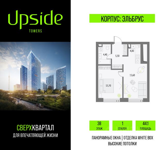 Продаётся 1-комнатная квартира площадью 39.7 кв.м на 36 этаже 55 этажного корпуса Эльбрус в квартале небоскребов "Upside Towers". В квартире отделка White-box, c видом . Номер квартиры А3613. Upside Towers - технологичный квартал строится в динамично развивающемся Бутырском районе, в 3 мин. от метро, в 5 мин. от ТТК. На территории 7 га возводится 5 высотных башен от 19 до 58 этажей, названных в честь главных вершин земли. Квартиры с панорамными окнами в пол, высокими потолками и современными инженерными решениями. Благоустроенная зеленая территория включает: приватные дворы, природный комплекс, прогулочный бульвар, ландшафтный парк 2,5 га с сенсорным садом и многофункциональными игровыми и спортивными площадками. Большое внимание в проекте уделяется созданию социальной инфраструктуры. Более 2000 кв.м. отдано под Upside club закрытый клуб, уникальное пространство для общения и развития жителей квартала, включая SKY SPA Relax на 47 этаже башни "Атлас" расслабляющей атмосферой, джакузи, сауной, залами для релаксации и йоги доступное жителям Upside Towers, всесезонное барбекю-патио, лаундж зону с камином и роялем, многофункциональные игровые пространства, домашний кинотеатр, коворкинг и переговорные. В башнях откроются смотровые террасы для резидентов с панорамными видами на город, парки, Останкинскую башню, ВДНХ, Ботанический сад и Москву-Сити. В рамках проекта строится государственная школа и детский сад, разместится более 15 000 кв.м. коммерческой инфраструктуры. Насыщенная социальная инфраструктура формирует множество сценариев для жизни на территории квартала. В Upside Towers применяются лучшие технологии и практики, чтобы обеспечить высшее качество жизни: Воздух, не уступающий по качеству горному, обеспечит приточно-вытяжная вентиляция. Пятиступенчатая очистка воды с сохранением полезных минералов. Центральное кондиционирование. Внутрипольные конвекторы с естественной конвекцией. Современные системы безопасности и мониторинга микроклимата. Высокоскоростной интернет на всей территории, в квартирах и паркинге за счет усиления GSM-связи всех ведущих операторов. Все места в подземном паркинге оборудованы зарядками для электрокаров. Бутырский район непрерывно развивается и готовится стать новым современным деловым районом Москвы. В рамках программы "Индустриальные кварталы" комплексного развития территории Огородного проезда будут построены современные образовательные и спортивные учреждения, торговые центры, кафе, банки, общественно-деловые здания и другие объекты. В пешей доступности работают школы, детские сады, поликлиники, аптеки, супермаркеты и многое другое. Рядом находится несколько крупных зелёных зон для спокойного отдыха: Парк Останкино, ВДНХ, Парк Сокольники, Гончаровский парк, в 15 минутах пешком располагаются знаменитые арт-пространства - дизайн-завод Flacon и "Хлебозавод". Время в пути на автомобиле до центра Москвы 15 минут. (Застройщик ООО "СЗ "К-Девелопмент") Продам 1-комнатную квартиру элитные на проезде Огородный в Москве.
