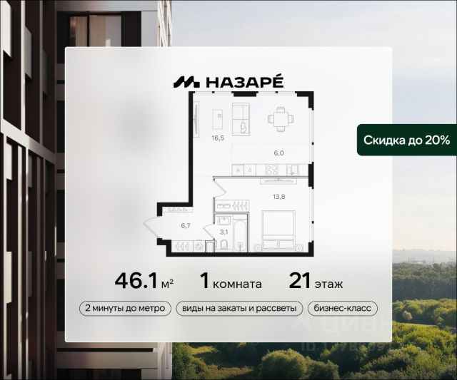 Просторная 1-комнатная квартира для молодой семьи. Общая площадь - 44.2 м2, удобная планировка, кухня-гостиная 18.2 м2. Панорамные виды из окон на две стороны - на национальный парк "Лосиный остров" и благоустроенный внутренний двор. Условия покупки: - Скидка при полной оплате - 10% - Ипотека от 3,5% на весь срок или 0,11% на первый год - Рассрочка без процентов - Trade-in с проживанием на время строительства дома НАЗАР - шесть домов бизнес-класса высотой 24-43 этажа. Проект расположен рядом с национальным парком "Лосиный остров" и парком "Сокольники". В продаже квартиры с мастер-спальнями, кухнями-гостиными, открытыми террасами, просторными кладовыми и ванными с окном. Форматы - от светлых студий 21,6 м2 до семейных 4-комнатных 125,5 м2. Часть лотов - с предчистовой отделкой White Box. Транспортная доступность: - Метро "Бульвар Рокоссовского" и МЦК - 2 мин. пешком - Северо-Восточная хорда - 3 мин. на автомобиле - Третье транспортное кольцо - 15 мин. на автомобиле - Садовое кольцо - 18 мин. на автомобиле Инфраструктура: В составе проекта появится собственный детский сад и торгово-развлекательный центр с акцентом на шопинг и досуг. На первых этажах домов откроются кафе, пекарни, магазины и службы сервиса. В районе Богородское находятся престижные школы, медцентры, магазины и спортивные клубы. Продам 1-комнатную квартиру элитные на шоссе Открытое в Москве.