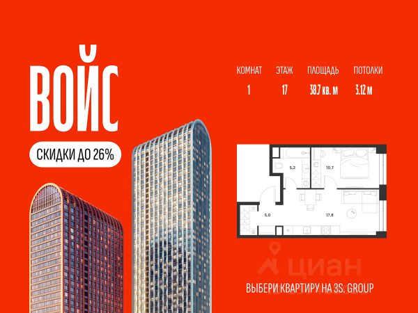 Ипотека от 3,5% на весь срок. Дополнительная скидка в офисе продаж! Продается уютная 1-комн. квартира площадью 37,1 кв.м на 10 этаже жилого комплекса бизнес-класса Войс. Общая площадь: 37,1 кв.м., жилая: 23,2 кв.м., площадь кухни-гостиной: 15 кв.м., высокие потолки: 3,12 м., санузел раздельный. О проекте: Войс. Высокие стандарты жизни Мы уверены, что высокие идеалы неизменно помогают достигать высот. Создавая Войс, мы ориентировались на людей с высокими требованиями к качеству и безупречным вкусом. Башни жилого комплекса, сочетают элегантную форму с динамичной геометрией фасадов, устремляются ввысь и отвечают самым высоким стандартам строительства. Технологичность, воплощенная в архитектуре - это ваш, собственный Войс. Преимущества локации Близость к метро Текстильщики, БКЛ и МЦК Новохохловская (10 мин) Рядом природный заповедник и конно-спортивная база Кузьминки-Люблино Будущее окружение Проект Южный порт - Текстильщики с деловым центром Сити-2 Небоскребы высотой до 300м Культурный центр с амфитеатром Променад вдоль Москвы-реки и яхт-клуб Архитектура Проект от Архитектурной мастерской Алексея Ильина Две перпендикулярные башни с арочными вершинами Высокая башня: светло-серый металл Низкая башня: терракотовая керамика Благоустройство Внешняя зона: парковки, магазины, кафе Внутренний двор: закрытая территория с озеленением Шумозащитный экран Сезонное озеленение Встречи на высоте Гранд-лобби высотой 8м Дизайнерская мебель Умные скоростные лифты Услуги Детский центр с игровой зоной Фитнес-студия для жителей
