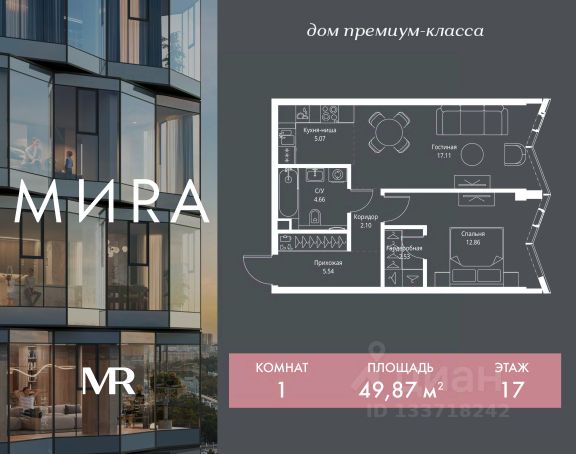 Прямая продажа от застройщика. Продаётся 1-комнатная квартира общей площадью 39.33 м² без отделки в доме премиум-класса МИRА на 3-м этаже 17 этажного дома. Квартира расположена в корпусе 1. Дом премиум-класса МИRA это: • Спокойный район с богатой историей и сложившейся инфраструктурой • Авторская архитектура на стыке классики и современности • Вход в парк прямо из жилого комплекса • Панорамные виды на Яузу, парки, ВДНХ и скульптуру "Рабочий и колхозница" • Удобные сервисы и безопасность для каждого резидента Расположение: Жилой квартал расположен в Алексеевском районе на северо-востоке Москвы, на второй линии домов, таким образом вы сможете дистанцироваться от шума и суеты проспекта Мира, но при этом будете жить недалеко от этой важной городской магистрали. Прямо у дома: • Парк Акведук • Река Яуза • Памятник "Рабочий и колхозница" Пешком: • 16 мин м. ВДНХ На автомобиле: • 12 мин ТТК • 15 мин Садовое кольцо • 12 мин Национальный парк "Лосиный остров" Благоустройство: Концепция благоустройства от бюро "ДРУЖБА" разработана в стиле "Лесная тропа". В уютном дворе расположились словно затерянные в лесу, площадки для отдыха. Они разделяются островками с травами, кустарниками, крупными камнями и деревьями, между которыми проходят узкие песчаные тропинки с деликатной подсветкой по вечерам. Центральной точкой притяжения для жителей станет главная площадь с фонтаном, которая открывается сразу из двух входных групп. Внутренний двор МИRA: • Детская площадка с зонами для игр малышей до трех лет и детей более старшего возраста • Спортивная площадка с профессиональным оборудованием для тренировок • Декоративные перголы • Воздушный арт-объект с подсветкой, похожий на облако • Чайный домик, где в отдельном отапливаемом павильоне можно в любое время года попить кофе с соседями или устроить камерное семейное чаепитие • Зоны для работы и отдыха с гамаком под навесом, скамейками и креслами Инфраструктура и окружение: В Алексеевском районе есть огромные благоустроенные парки, магазины, гимназии с высоким рейтингом и филиалы ВУЗов, частные и государственные детские сады, модные кофейни и фитнес-центры. В квартале МИRА предусмотрены: • 2 ресторана с видом на парк Акведук • 3 кафе • фитнес-студия • подземный паркинг на 330 машино-мест Компания MR предлагает своим клиентам специальные условия приобретения квартир в рамках программ ипотечного кредитования от банков-партнеров.