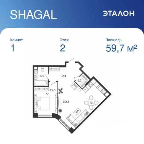 Продается 1-к квартира без отделки в ЖК "Shagal". Общая площадь квартиры — 59.7 кв. м, этаж 2 из 19. Тип дома — монолитный. Цена указана при 100% оплате. Квартал Shagal — крупнейший проект комплексного освоения в Москве. В проекте реализуется продуманная система маршрутов. Еда, покупки, услуги, прогулки, спорт, образование, работа и развлечения — все будет находиться рядом с домом: принцип 15-минутной доступности инфраструктуры и сервисов. Разнообразие и продуманность пешеходных маршрутов, а также короткие расстояния между основными точками притяжения мотивируют резидентов Shagal с удовольствием передвигаться по району пешком, не выпадая из ритма большого города. Продуманная транспортная сеть района и безопасный скоростной режим создают комфортные условия для перемещений любым способом: на автобусе, машине, самокате или велосипеде. Не нужно выезжать из района, чтобы получить комфорт и сервис самого высокого современного стандарта: все необходимые услуги, инфраструктура, парки и вторая по протяженности набережная в городе — на расстоянии 15-минутной прогулки от вашего дома. Квартал Shagal станет первым в Москве жилым районом, где будут комплексно реализованы инновационные подходы в проектировании и строительстве зданий. Архитектурная композиция состоит из домов отличающегося типа. Высотные башни-доминанты с видовыми квартирами, дома пониже, растворяющиеся в спокойствии внутренних двориков, малоэтажные камерные таунхаусы и разноэтажные дома с лоджиями на первой береговой линии соединяются в одно эстетичное современное произведение. В результате создаётся насыщенное идентичное пространство, подчёркнутое плавностью природных форм, наполненное светом, воздухом и свободой. Продается 1-комнатная квартира элитные на улице Ильи Чашника в Москве.