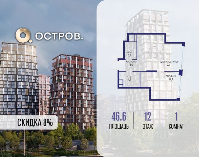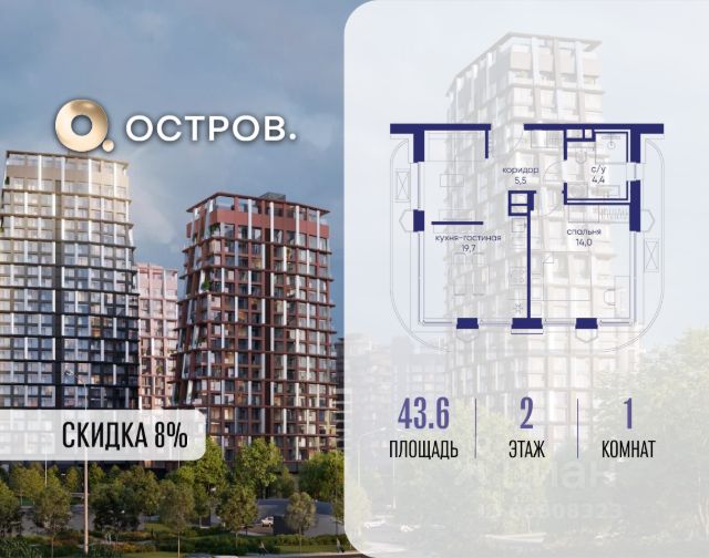Скидка до 8% действует до 31.03.2026 г. при 100% оплате и не субсидированной ипотеке. Продаётся 1-комн. квартира от застройщика: общая площадь 47.50 м², жилая 14.10 м², кухня 22.10 м², 2-й этаж, жилой квартал "Остров 14", корпус 6 (секция 1). Срок сдачи: 2 квартал 2029 года. 1 совмещенный санузел. Остров.14 ДОХОДНЫЙ ДОМ - ЧАСТЬ ПРОЕКТА "ОСТРОВ", В 10 МИНУТАХ ОТ МОСКВА-СИТИ, В 15 МИНУТАХ ЕЗДЫ ОТ САДОВОГО КОЛЬЦА. Квартиры для сдачи в аренду Инвестиционный продукт для получения постоянного дохода Квартиры с отделкой и мебелью, и с управлением "под ключ" Постоянный доход для инвесторов, отельный сервис для арендаторов Востребованные для аренды планировки: студии, 1- и 2-комнатные квартиры 28-64 м2 Полная комплектация квартир: отделка, мебель, бытовая техника, кондиционеры Постоянный поток арендаторов - 10 минут от Москва-Сити, 5 минут от метро "Мневники", самодостаточная инфраструктура в квартале и собственная клубная инфраструктура в доме, спортивный, рекреационный и деловой кластеры на территории ОСТРОВА Продам 1-комнатную квартиру элитные на улице Нижние Мневники в Москве.