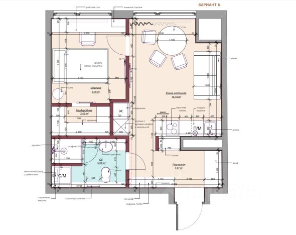 Брльшая кухню- гостиную 17,7 кв.м, спальню 12,75, совмещенный санузел, просторный холл, гардеробная.
