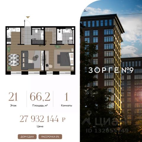 Продается однокомнатная квартира 111 в новостройке ЖК "Дом на Зорге" по адресу Москва, САО, Сокол, улица Зорге, 25с2, Москва, 125252. Общая площадь квартиры - 36.10 кв. м., этаж 10 из 16, секция 1. Тип проекта, по которому построен дом - монолит, компания-застройщик - ООО "А101". Стоимость квартиры - 25955745 Р. Срок сдачи - 4 квартал 2025. ПРЕДЛОЖЕНИЯ ОТ ЗАСТРОЙЩИКА В ОКТЯБРЕ 2025: Ипотека от 13,9 % для всех! На весь срок. "Семейная ипотека" вернулась. Ставка от 3,5 % на весь срок! Без удорожания! Выгодное ипотечное комбо: Ипотека от 2200 р./мес. и от 6 % после рождения ребёнка! Ипотека для всех "Держи пять!" - ставка 5 % на 2 года! *более подробную информацию по скидкам и акциям уточняйте в отделе продаж Дом на Зорге" - жилой комплекс бизнес-класса в историческом районе Москвы со сложившейся инфраструктурой.Корпуса переменной этажности с элегантными монохромными фасадами гармонично вписаны в статусное окружение. Архитектурно-художественная подсветка подчеркнёт изысканные очертания дома.В приватном и тихом дворовом пространстве появится фонтан со слэбами натуральных камней, детские площадки, места для настольных игр и спокойного отдыха. Безопасность обеспечат видеонаблюдение, центральный пост охраны и система контроля доступа. Округ, где строится "Дом на Зорге" (САО), известен ведущими медицинскими центрами страны, престижными учебными заведениями (включая школы), спорткомплексами, бизнес-центрами. В лобби с дизайнерской отделкой предусмотрены круглосуточный консьерж-сервис, колясочные, зоны ожидания, аппараты для чистки обуви. Подземный 2-уровневый паркинг оснащён системой автоматического распознавания номеров. Всего в 350 м - станция метро "Зорге". До "сердца" столицы - 11 км. Преимущества "Дома на Зорге" - престижная локация с развитой инфраструктурой - 350 м от станции метро (МЦК) "Зорге" - закрытый приватный двор с уникальным благоустройством Продается 1-комнатная квартира элитные на улице Зорге в Москве.